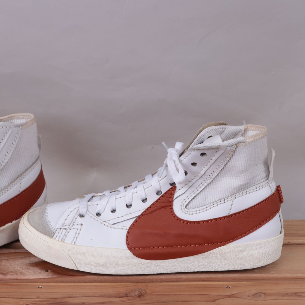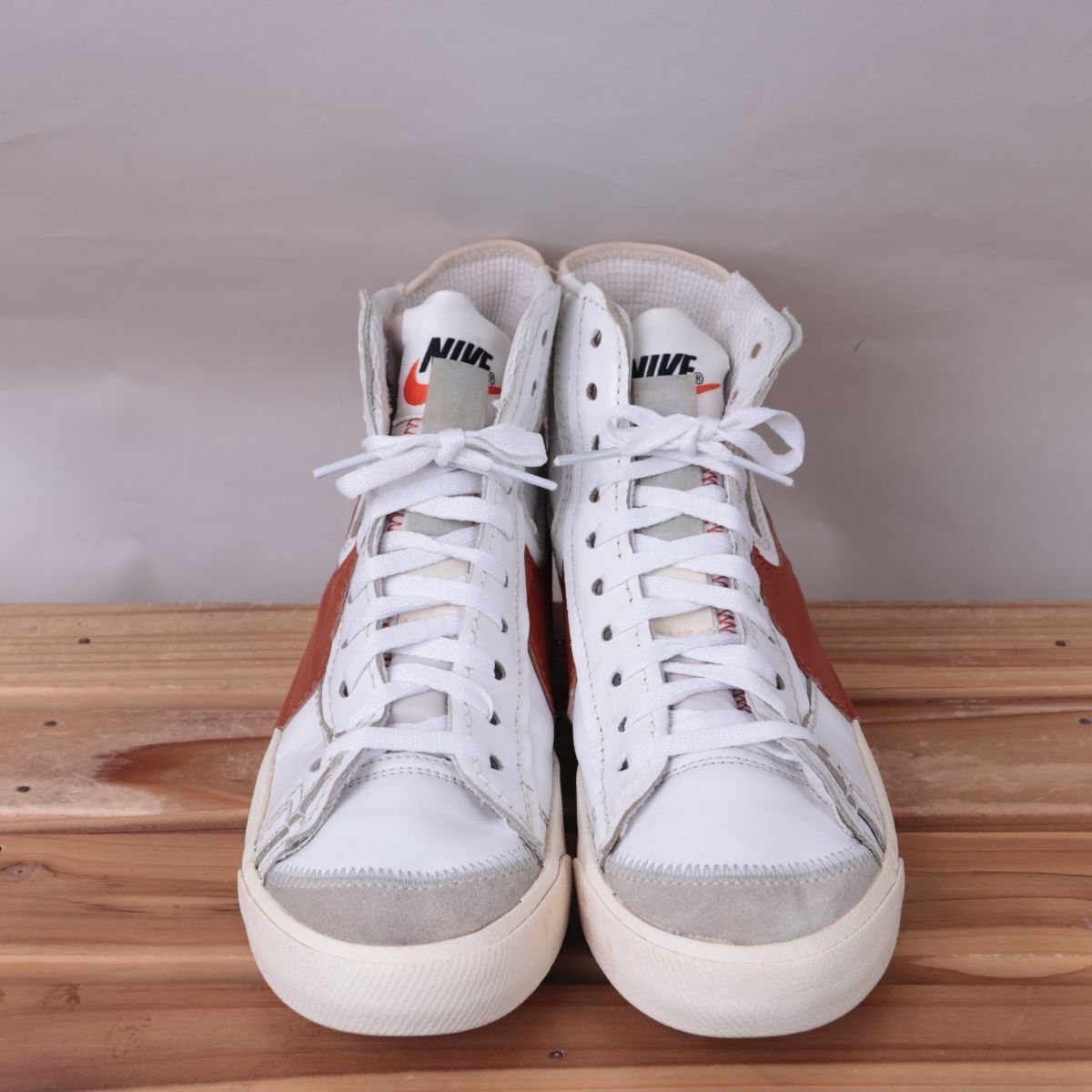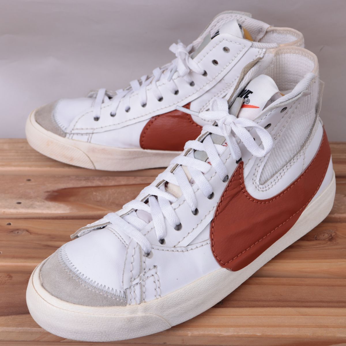 z3492 ナイキ ブレーザー ミッド 77 ジャンボ US8.5 26.5cm/白 ホワイト 茶 NIKE BLAZER MID '77 JUMBO ブレザー メンズ スニーカー 中古