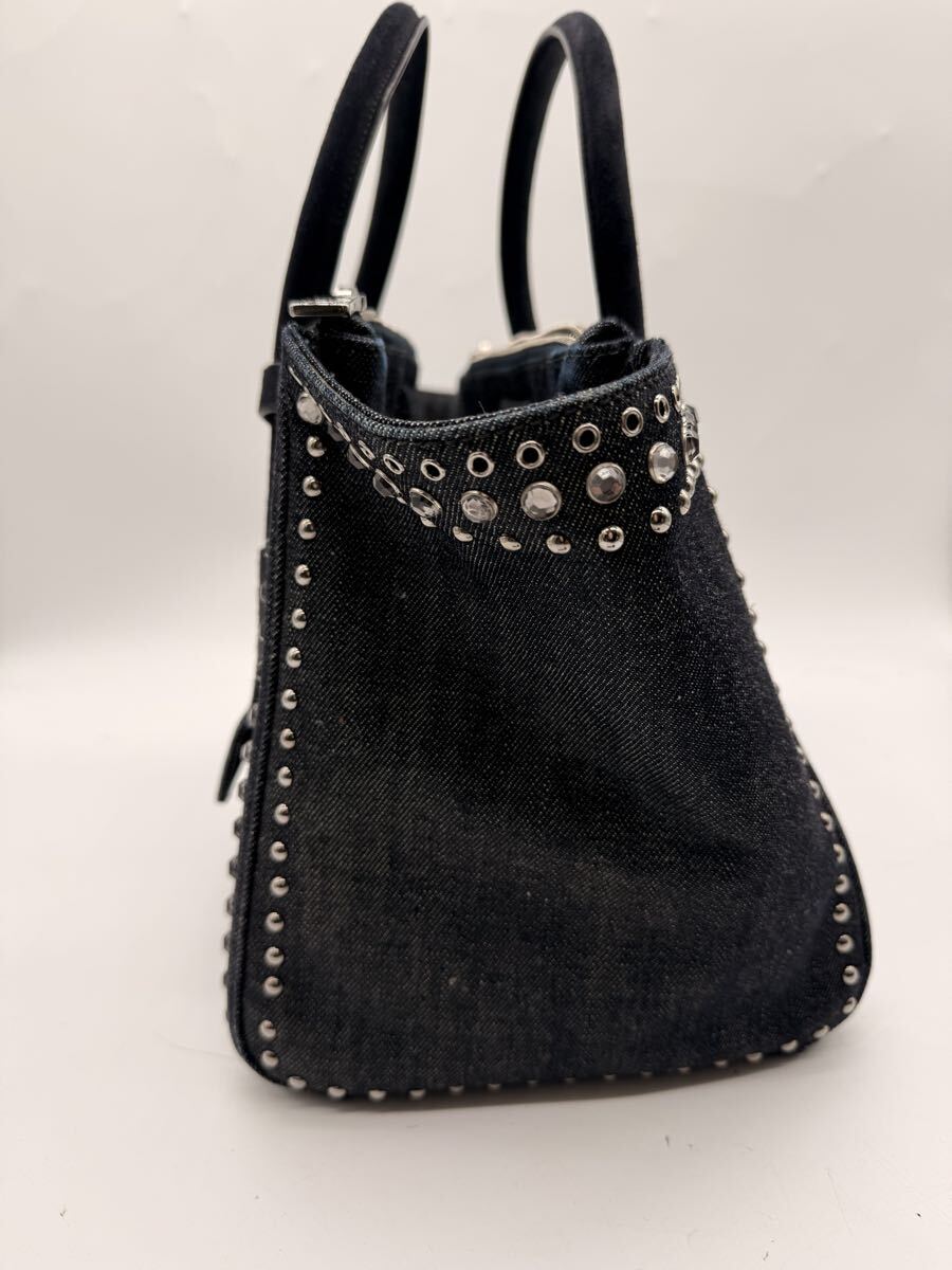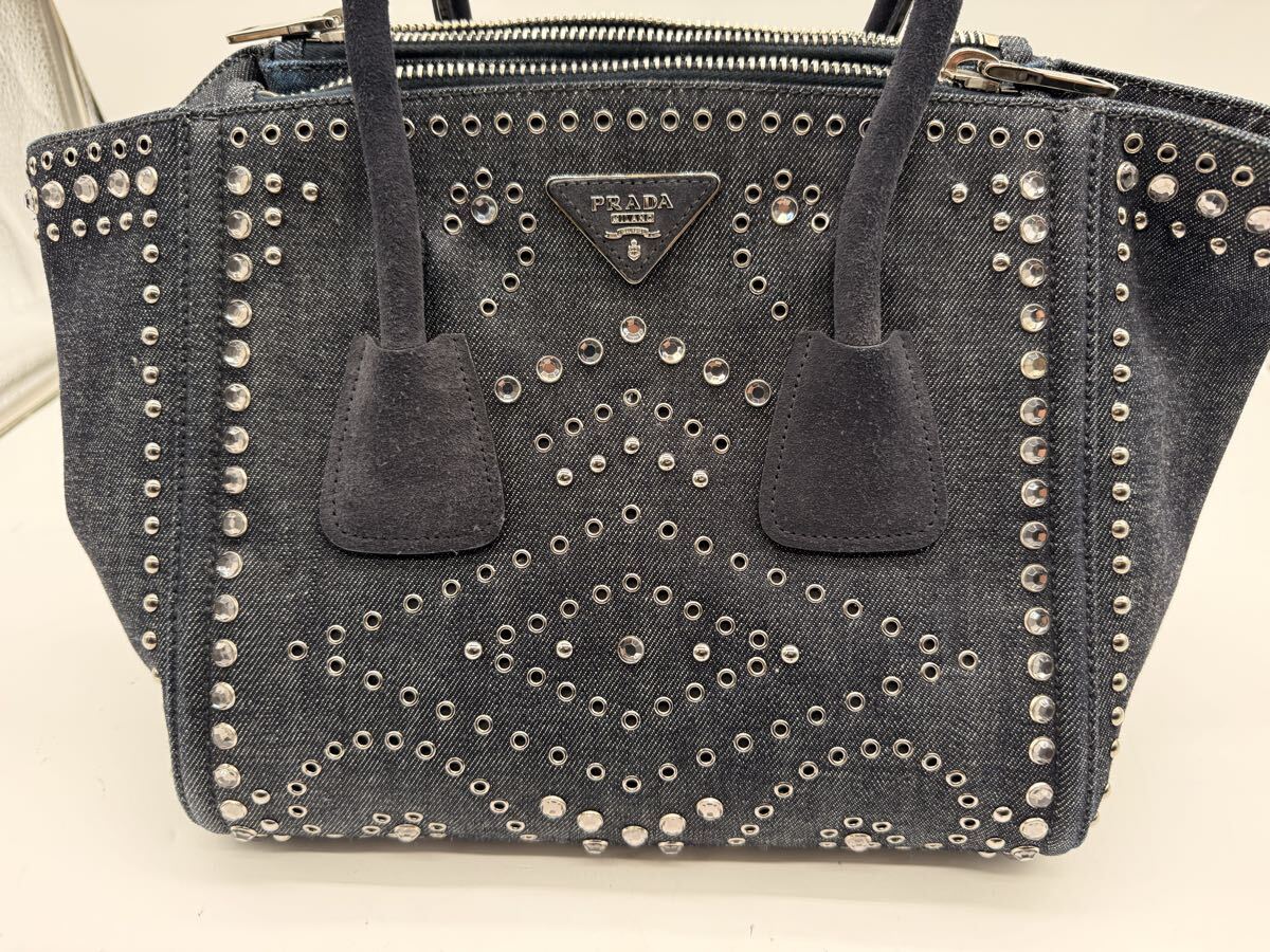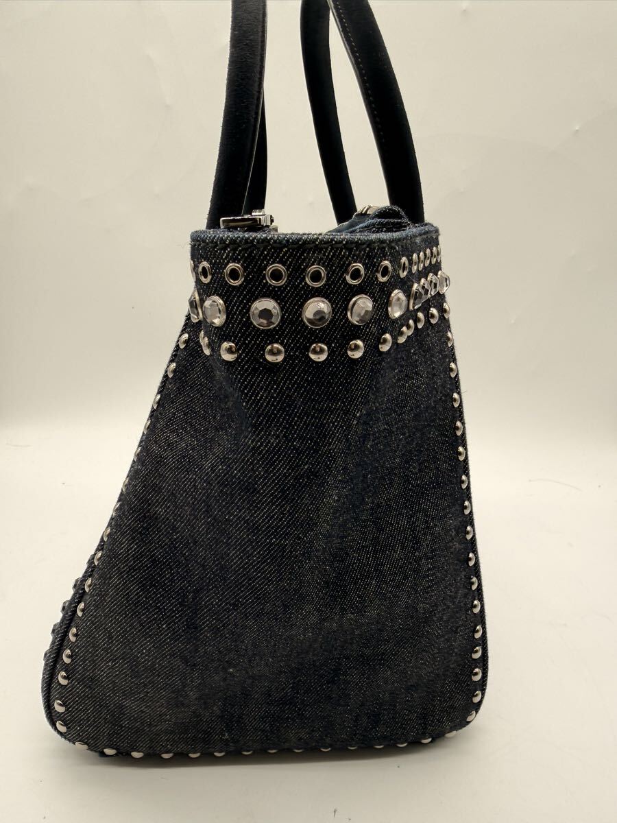 ☆ 極美品 PRADA デニム ビジュー スタッズ トートバッグ カナパ 激レア カード有り 保存袋付き