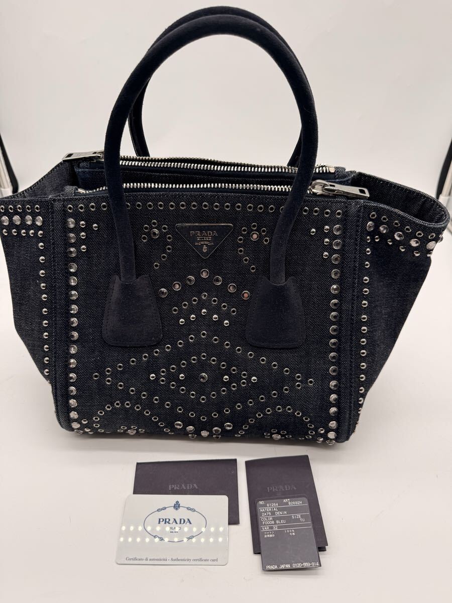 ☆ 極美品 PRADA デニム ビジュー スタッズ トートバッグ カナパ 激レア カード有り 保存袋付き プラダ