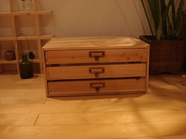 ★サイズ変更可能★A4ネームプレート3段引き出し/無垢材☆木製書類ケース カントリー オーダー可能 オーダー可 サイズ変更可