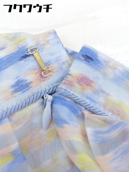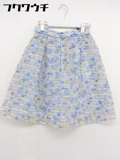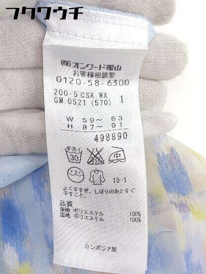 ◇ 組曲 クミキョク 総柄 膝丈 台形 スカート サイズ1 ブルー マルチ レディース
