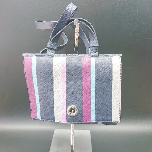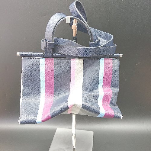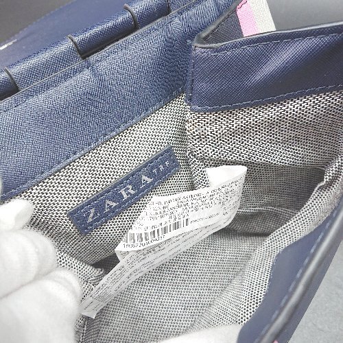 ◇ Θ ZARA ザラ ストライプ柄 2way ハンドバッグ ショルダーバッグ ネービー ピンク ブルー系 レディース E