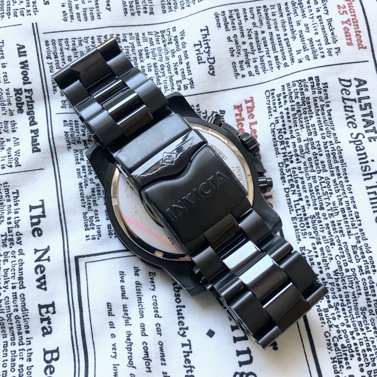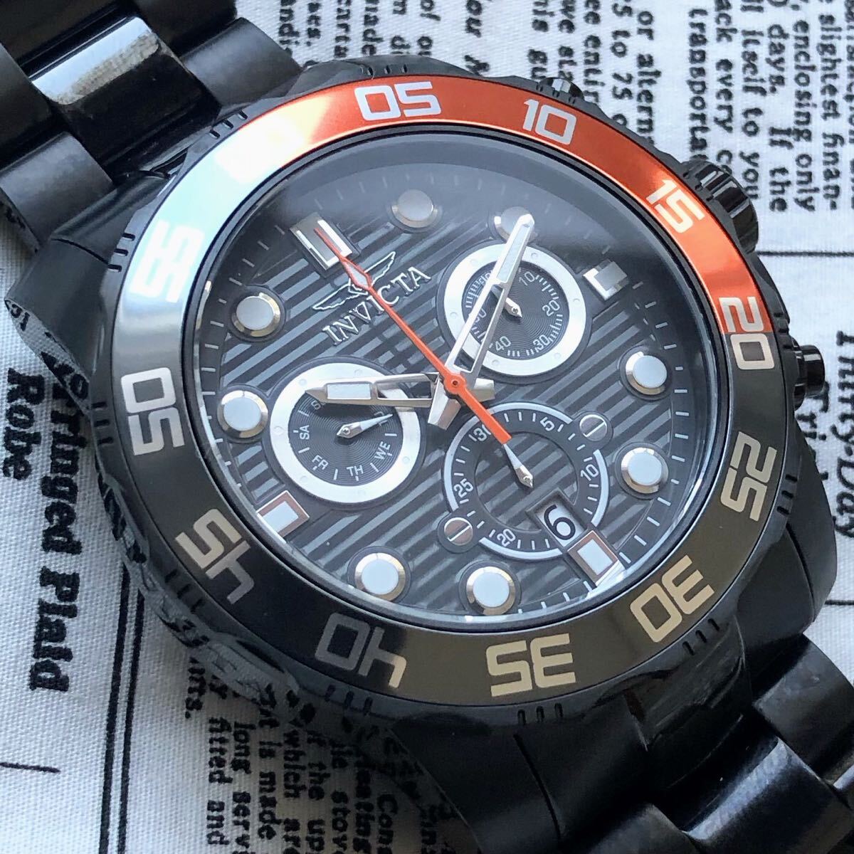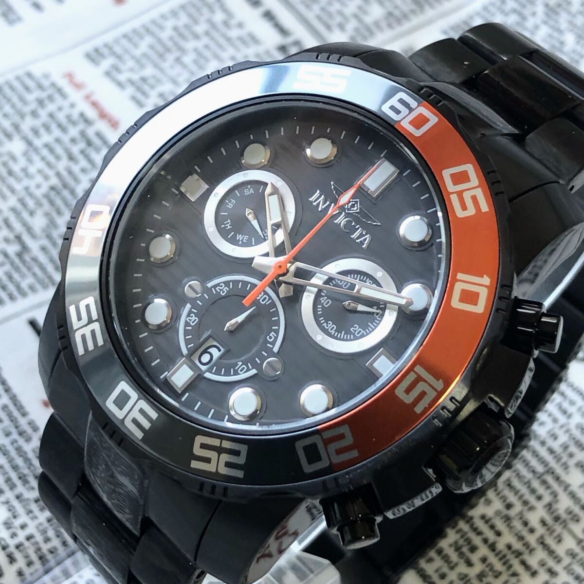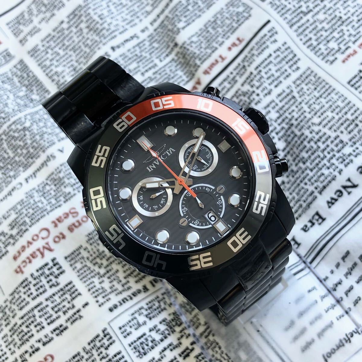 #3826【お洒落で高級】メンズ 腕時計 インビクタ Invicta クォーツ Quartz 動作良好 黒文字盤 インヴィクタ クロノグラフ 防水 黒赤ベゼル