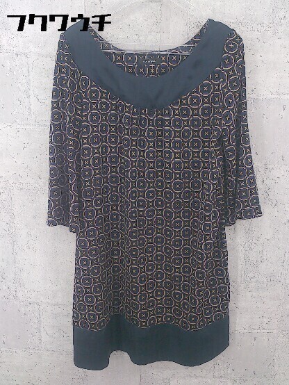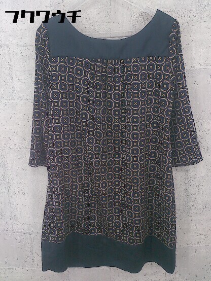 ◇ Ray BEAMS レイビームス 総柄 七分袖 ミニ チュニック ワンピース ネイビー ベージュ レディース