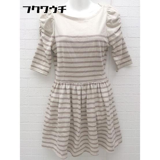 ◇ snidel スナイデル ボーダー 半袖 ミニ ワンピース サイズ0 ベージュ ブラウン レディース