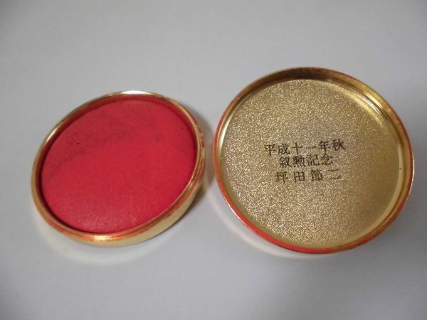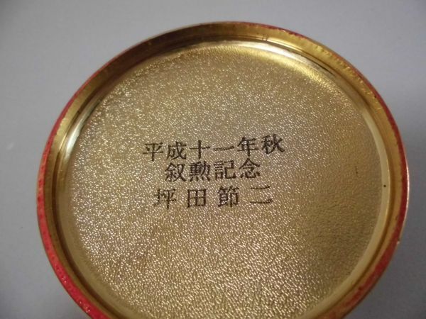 ◆朱肉 菊紋 彫金 朱肉入れ◇叙勲記念◆坪田節二◇24KGP