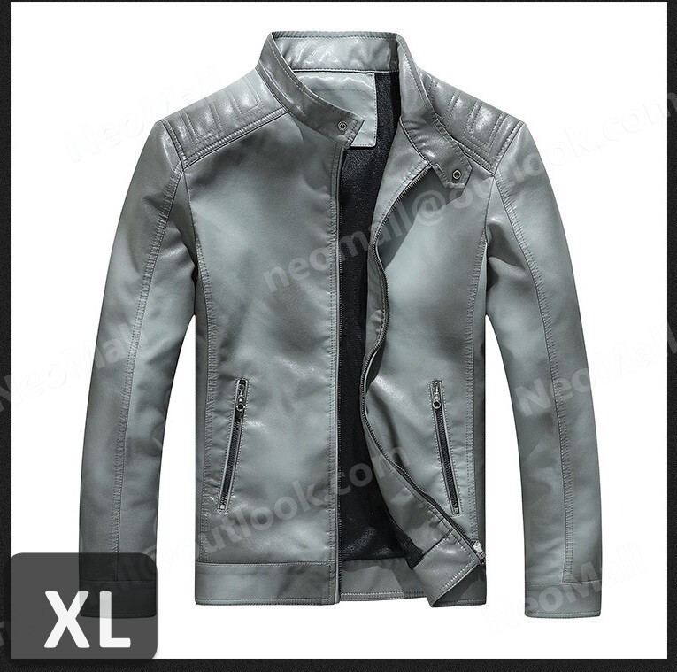 メンズ レザージャケット【986】グレー XLサイズ 裏起毛 革ジャン バイクジャケット ジャケット PUレザー ブルゾン ライダーズ