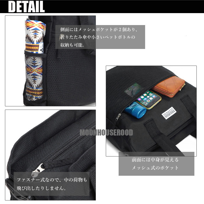 ファスナー式なので、大切な中の荷物も飛び出したりしません。
