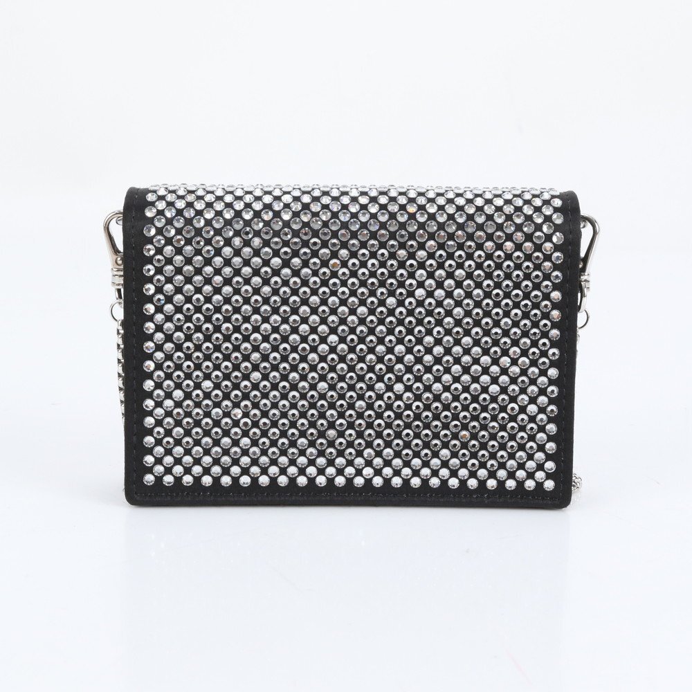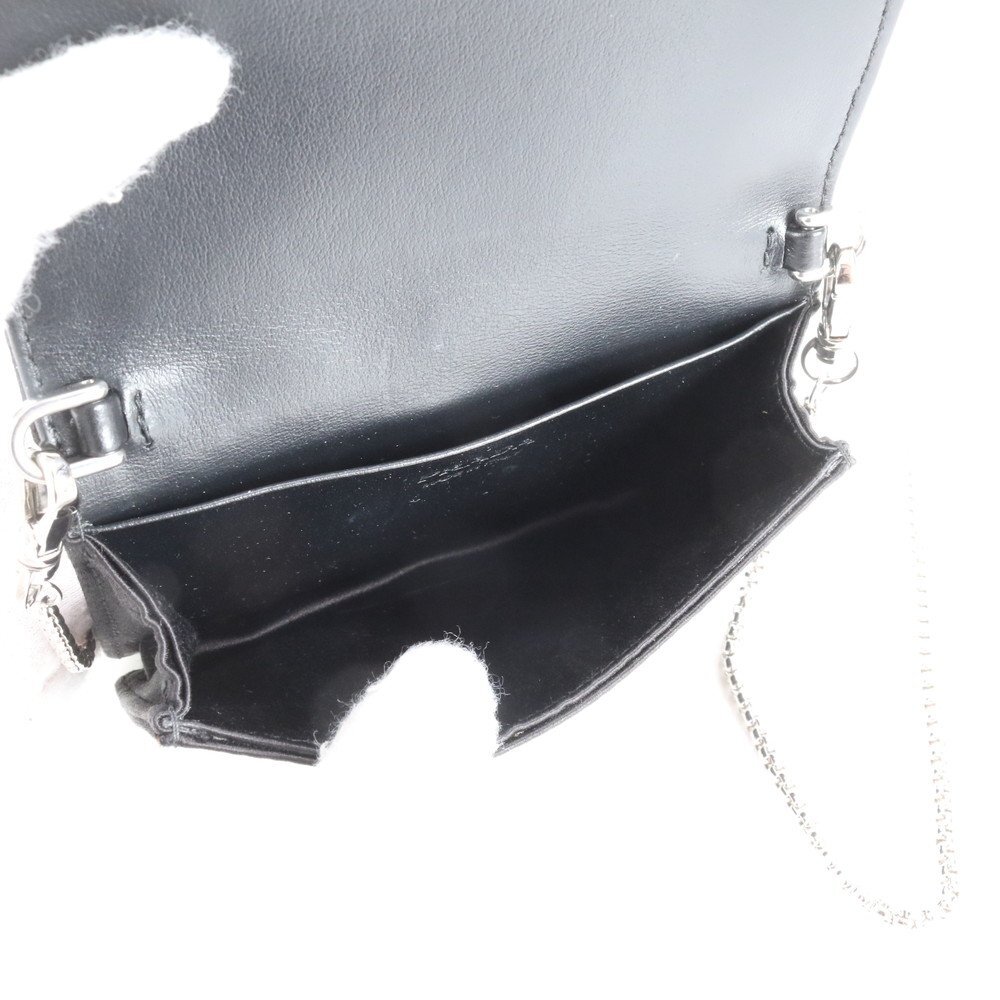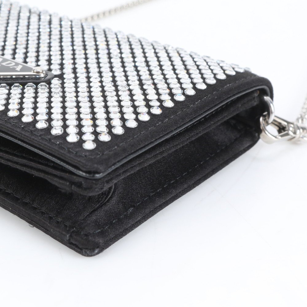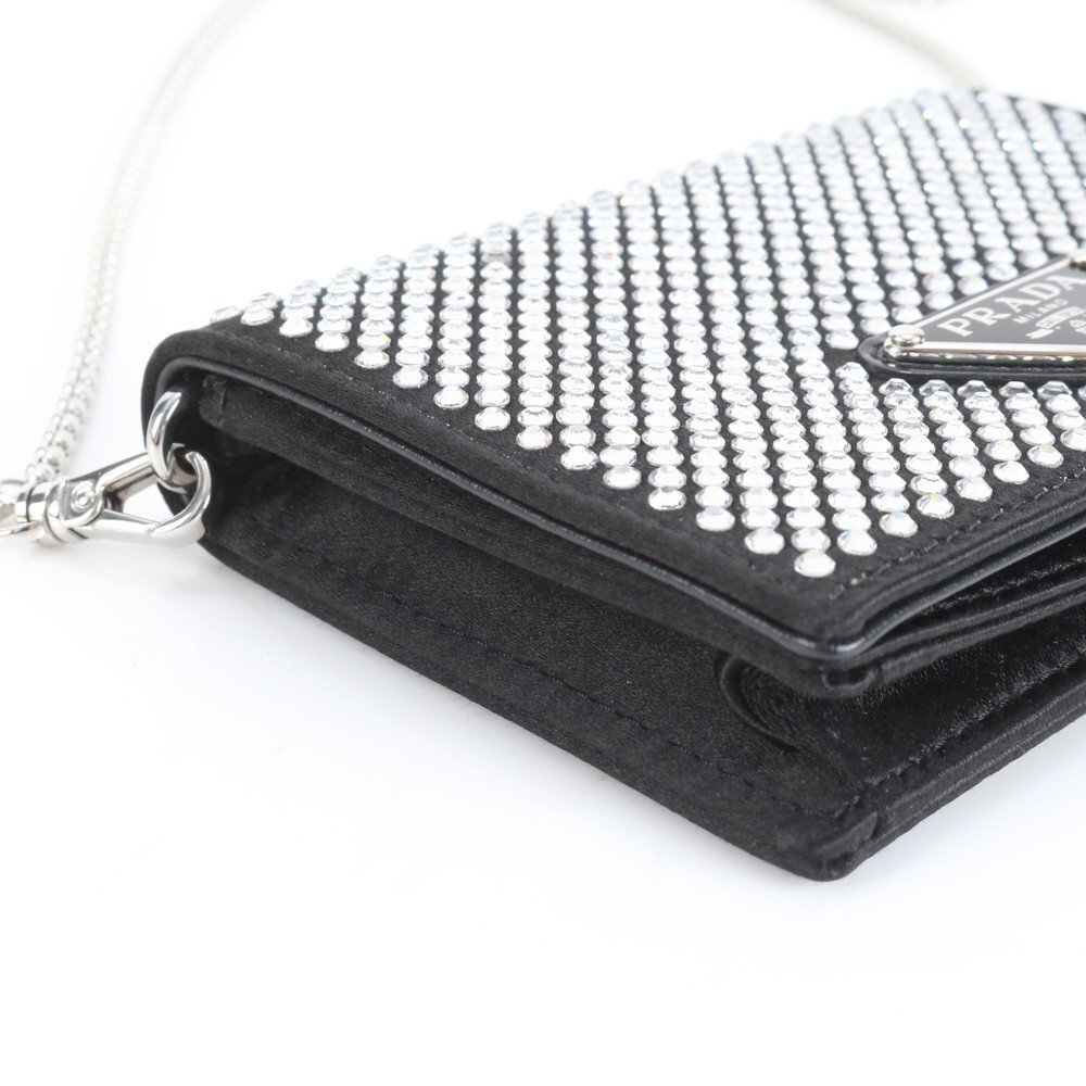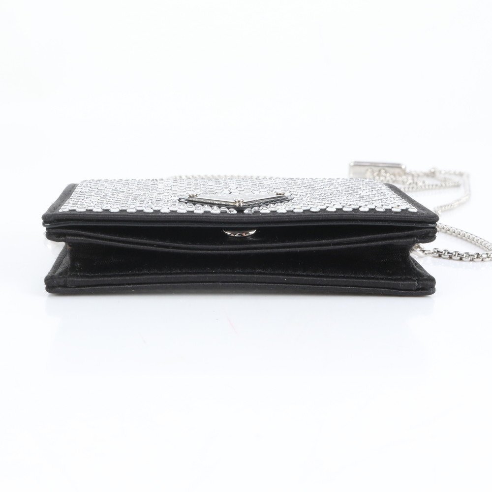1円 未使用 プラダ ギャランティカード 三角ロゴ ラインストーン チェーン ショルダー 1MR024 レザー カードケース レディース EER DB22-7