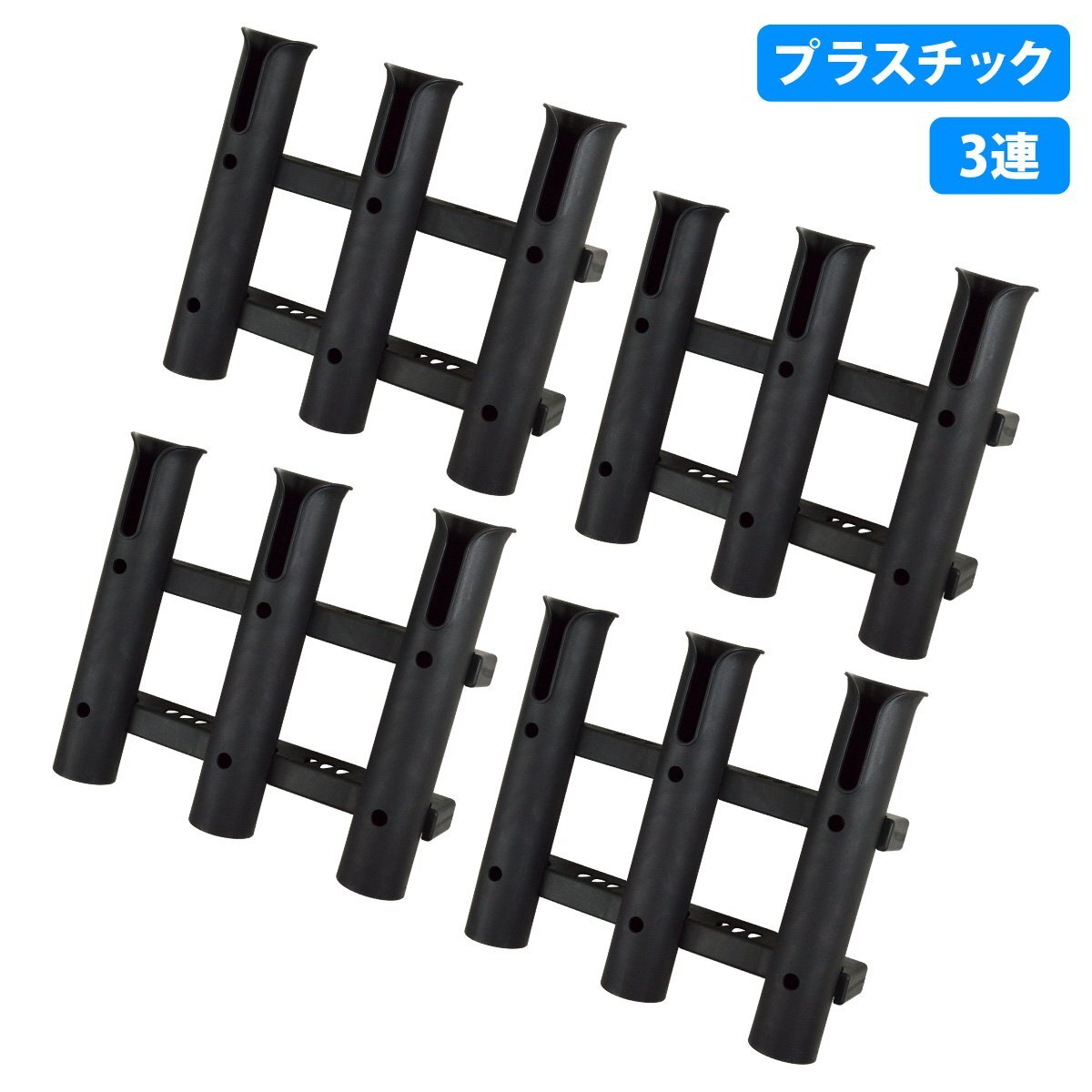 【送料無料】[3連 4個セット] ロッド ホルダー 竿 立て 置き 入れ 釣り フィッシング スタンド ネジ付 固定 船 漁船 ボート 黒 ブラック