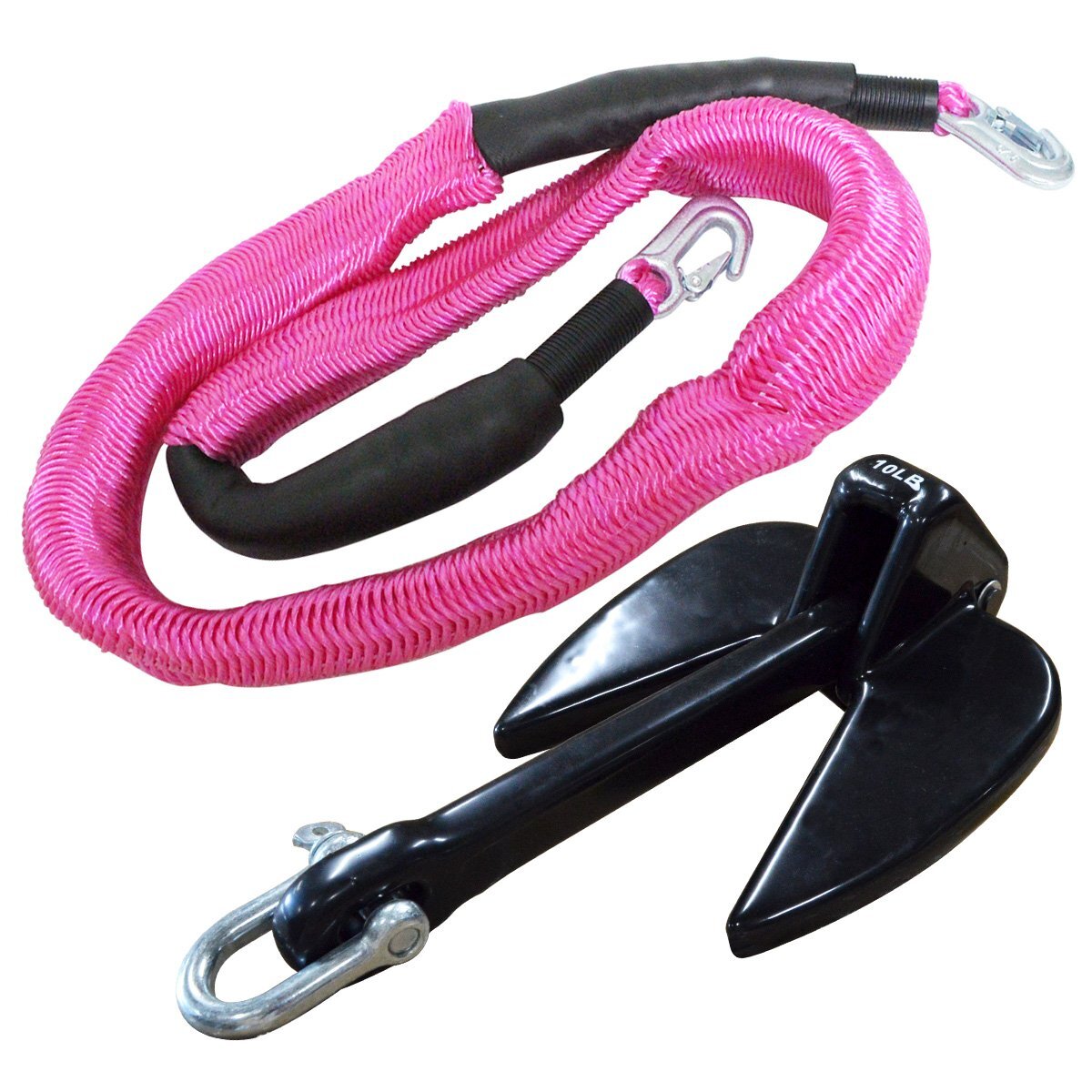 【新品即納】『伸縮ロープ/アンカーセット』爪型 アンカー 10LBS 4.5kg 黒 ブラック 6M フロート のびのび アンカー ロープ ピンク