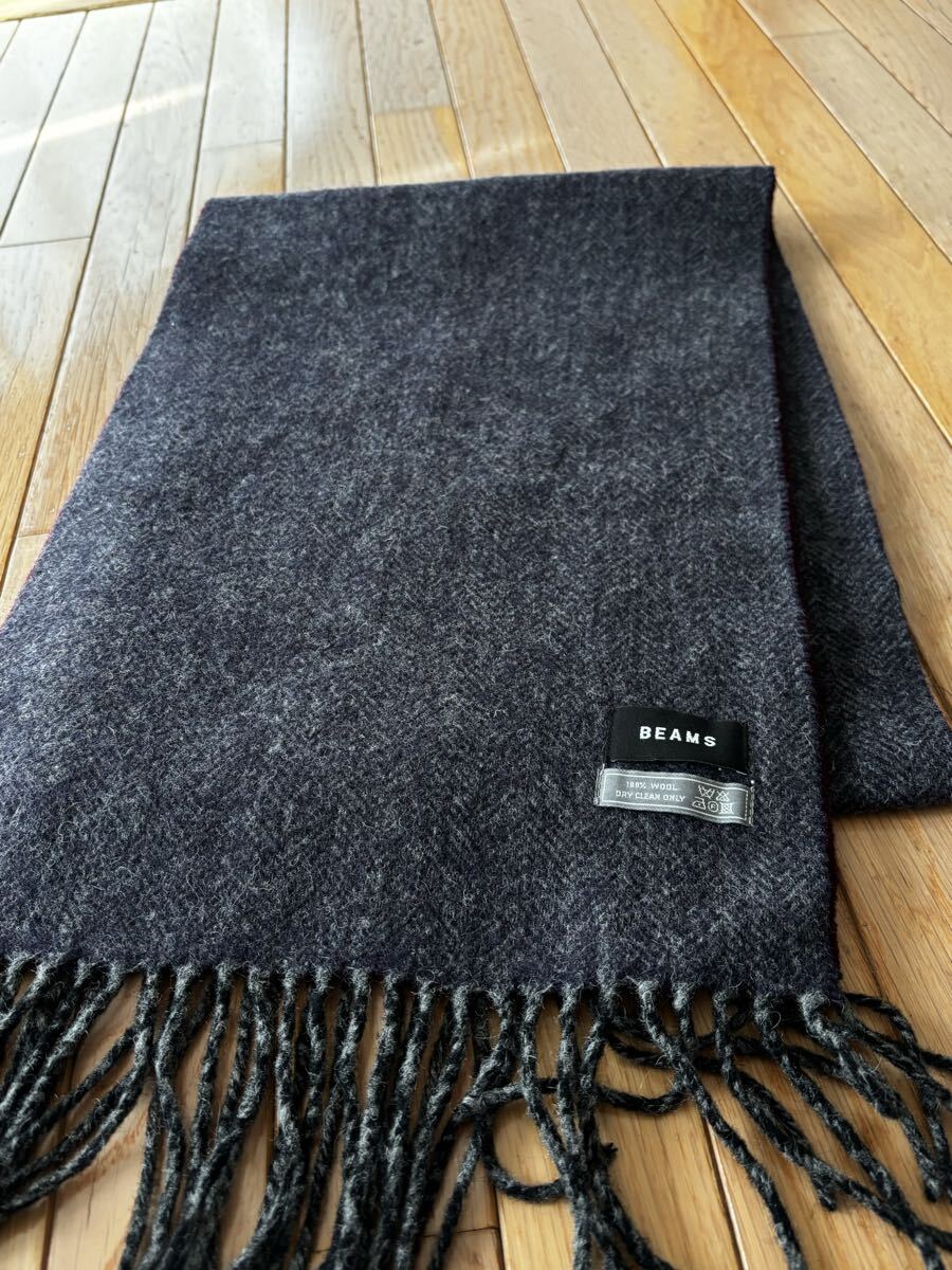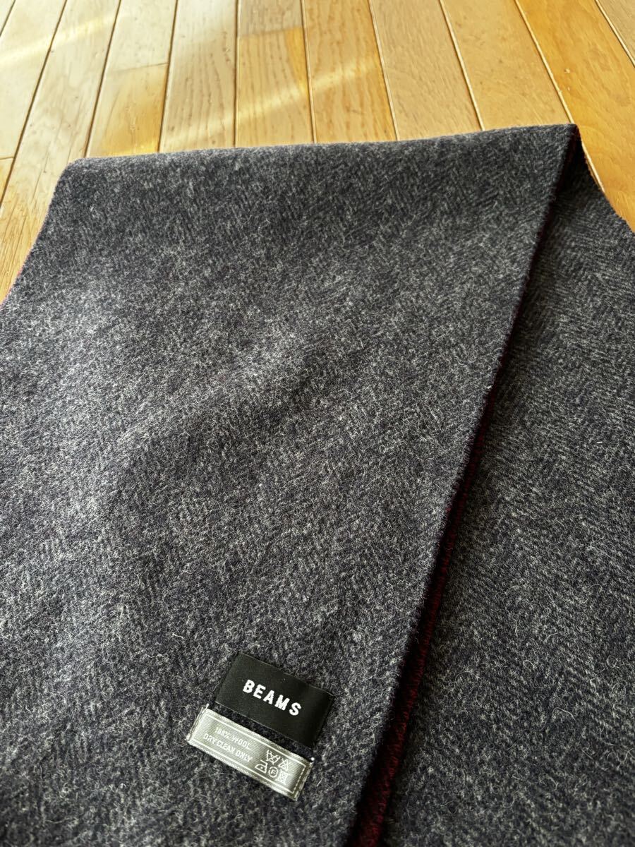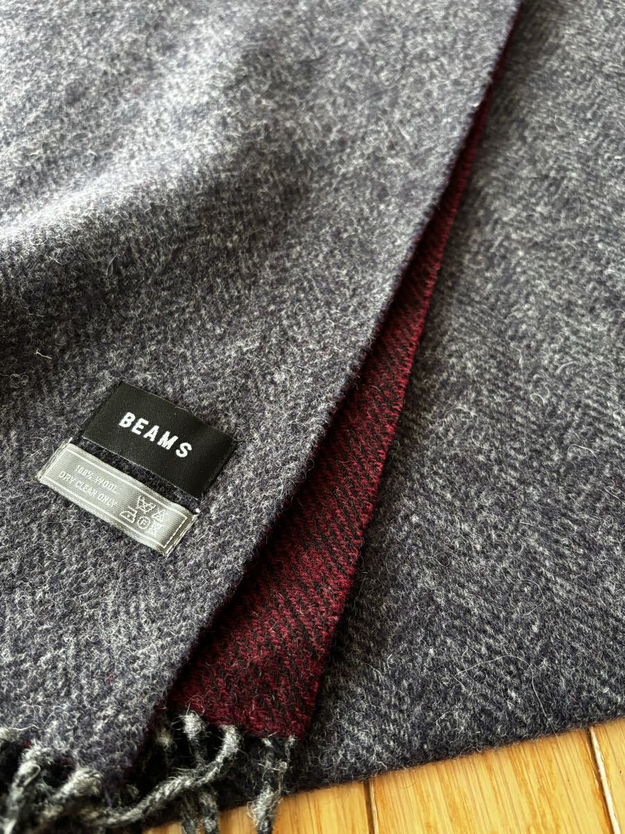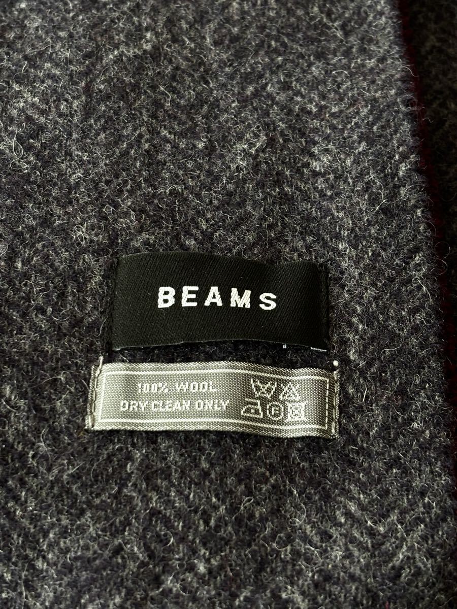 BEAMS ビームス マフラー 毛100% 温かいおススメ 180×30cm グレー レッド オシャレ 美品