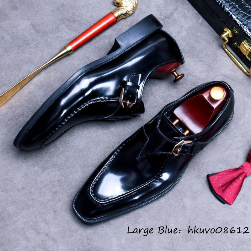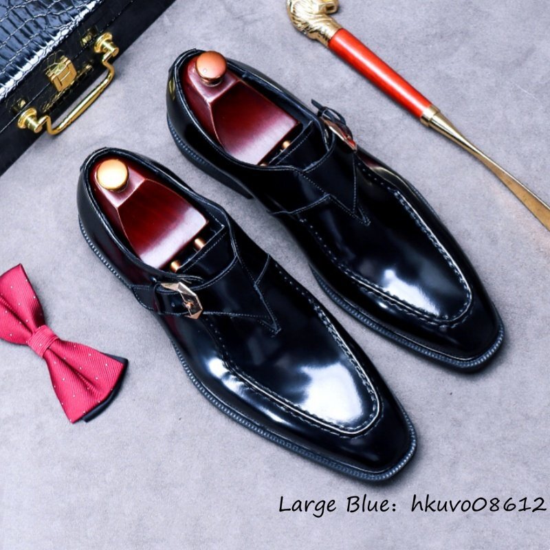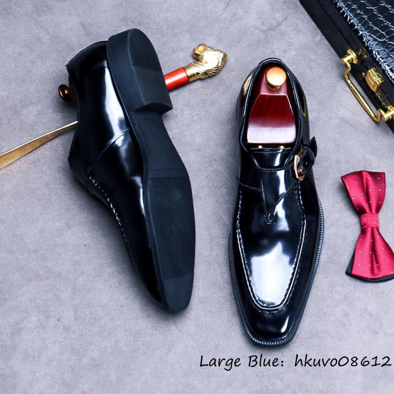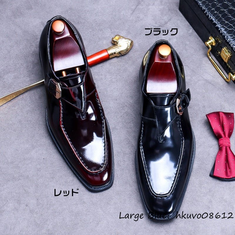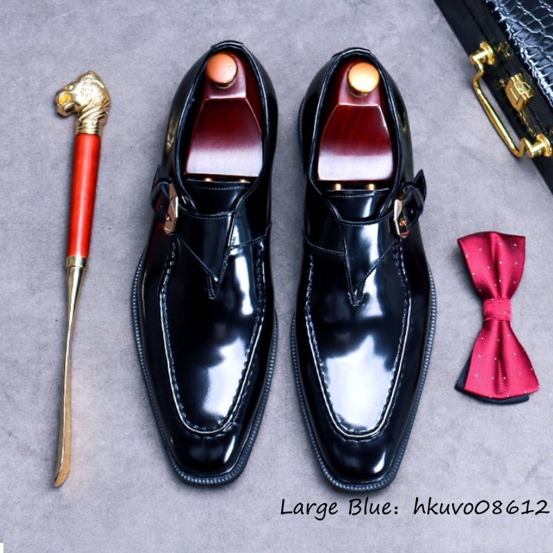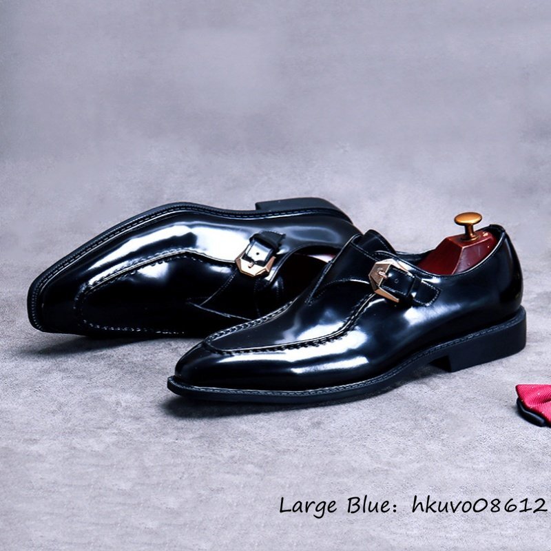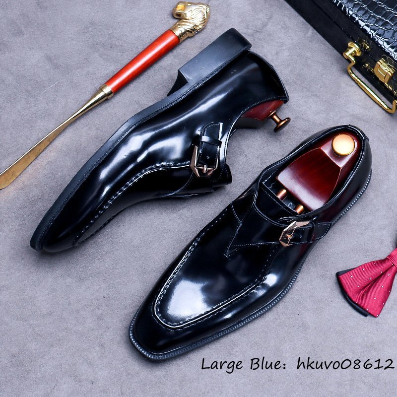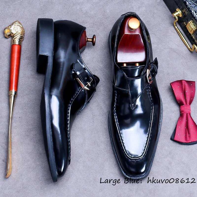 最高級★ビジネスシューズ 本革 レザーシューズ 職人手作り 極希少 モンクストラップ 牛革 紳士靴 フォーマル 宴会 革靴 ブラック 24.5cm