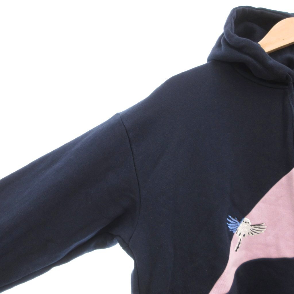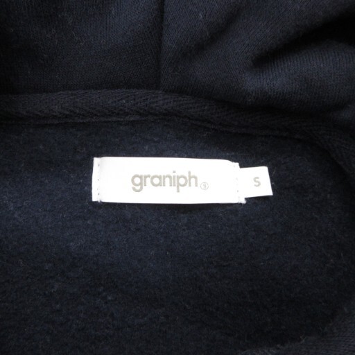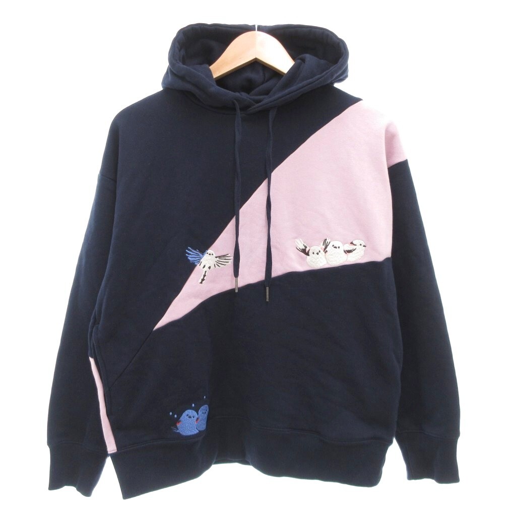 グラニフ graniph 美品 シマエナガ 裏起毛ライトアップパーカー フーディ S プルオーバー 刺繍 長袖 紺 ネイビー 012000796 /AE