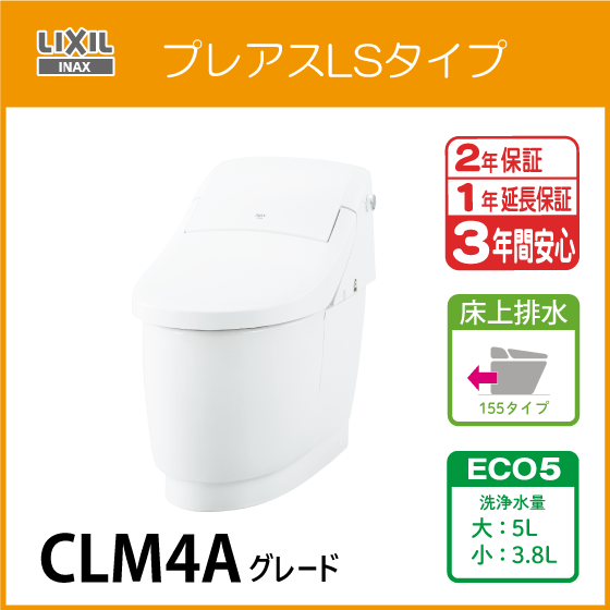 一体型便器 プレアスLSタイプ 床上排水 155タイプ ECO5 CLM4Aグレード YBC-CL10PM DT-CL114APMU リクシル イナックス LIXIL INAX