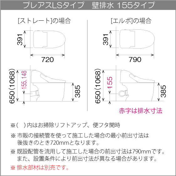 ■ 『壁排水(床上排水)』仕様、排水芯(高さ):155mmです。