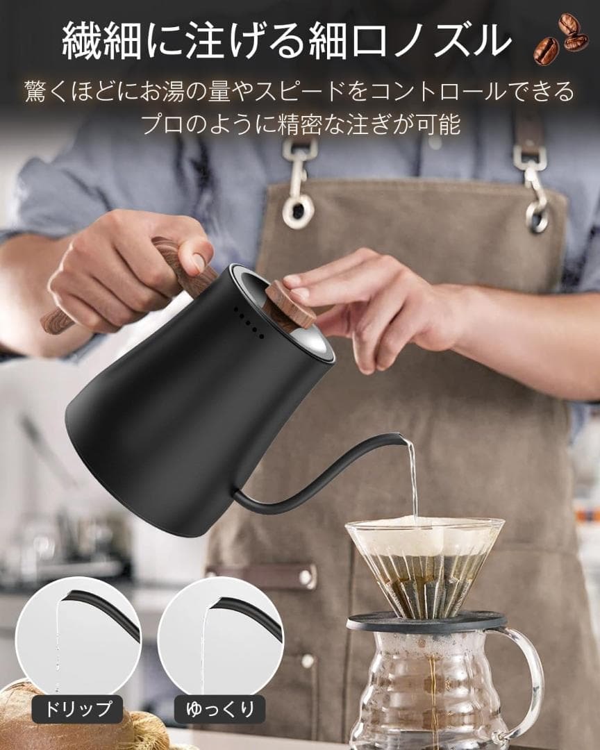 電気ケトル コーヒー 1℃単位温度調整 0.8L 小型 細口 ドリップポット 4時間保温機能 電気ポット コーヒー ケトル 1000W 空焚き防止機能 自動電源オフ カフェケトル 湯沸かし 一人暮らし 二人暮らし ステンレス クリスマス/新年/お祝い/贈り物 プレゼント ブラック 木目調 PSE認証済み (ブラック) 【コントロールしやすい細口ケトル・小型0.8L容量】Aliliy電気ケトルは狙った場所に注ぎやすい細口ノズルを採用しており、注くお湯の量や速度、場所まで自由自在にコントロールできます。細口タイプでお湯がドバッと出すぎることなく、細長くカーブを描いた注ぎ口は、プロのような繊細な注ぎを可能にし、ストレート型よりもお湯の勢いが弱めなので、コーヒーのドリップ時や、紅茶などを淹れる際に適しています。コンパクトながら容量0.8Lとコーヒーカップ約5杯分(1杯150ml)、マグカップなら約3杯分(1杯250ml)が沸かせます。小型なのに一人暮らし・二人暮らしの方、少人数家族でおもにコーヒー・お茶に使う場合にもOK。電気ポット内側には満水容量がわかる「MAX」の表示付き、水の入れすぎを防ぎます。 実物の写真は6枚目からになります。 トップ画像や商品説明と相違がある可能性がありますので実物の写真を確認してからのご購入お願いします。 もし相違や商品説明と違う場合はコメントくださいませ。商品詳細をお調べいたします。 不安がある方、完品を求める方は購入しないでください。 amazon価格 ¥8,980 即日発送。 開封痕、使用痕等がある場合がございます。 外箱の破損や多少のビニールの破れ等は不問としております。 本商品は訳あり商品となっているため、箱が潰れている、ビニールが破けている、指紋が若干ついている、などの可能性がございます。 検品は最低限しておりますが使用感や部品不足など見逃している可能性もございます。 1100円以上の商品はフォロー+商品購入希望コメントで100円お値引き致します。 発送方法は最安値で送るため変更になる場合もございます。 必ずプロフィールを一読、了承されてからのご購入お願いします。 購入後のクレームは対応しかねますので上記をしっかりとご理解いした上でのご購入をお願いします。 管理用箱番号【122e442】 |