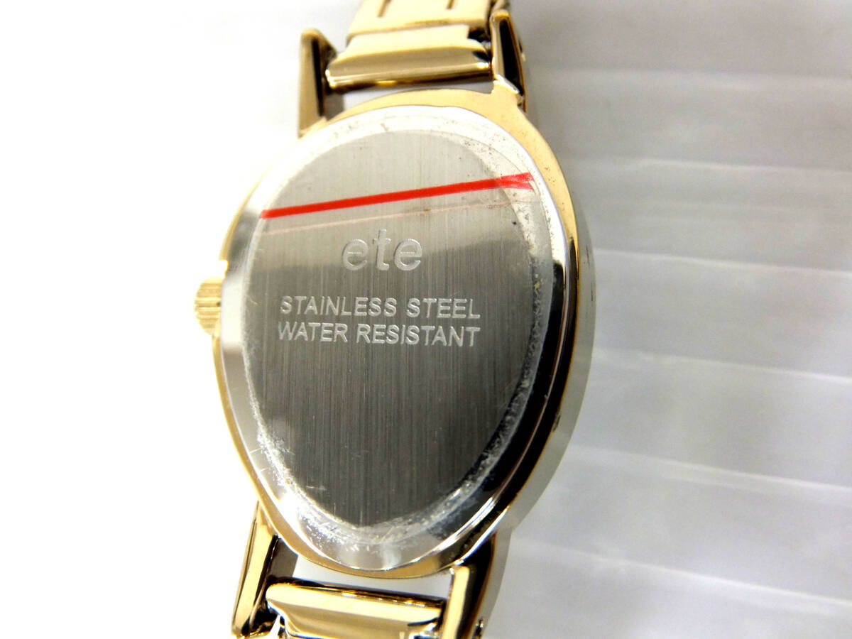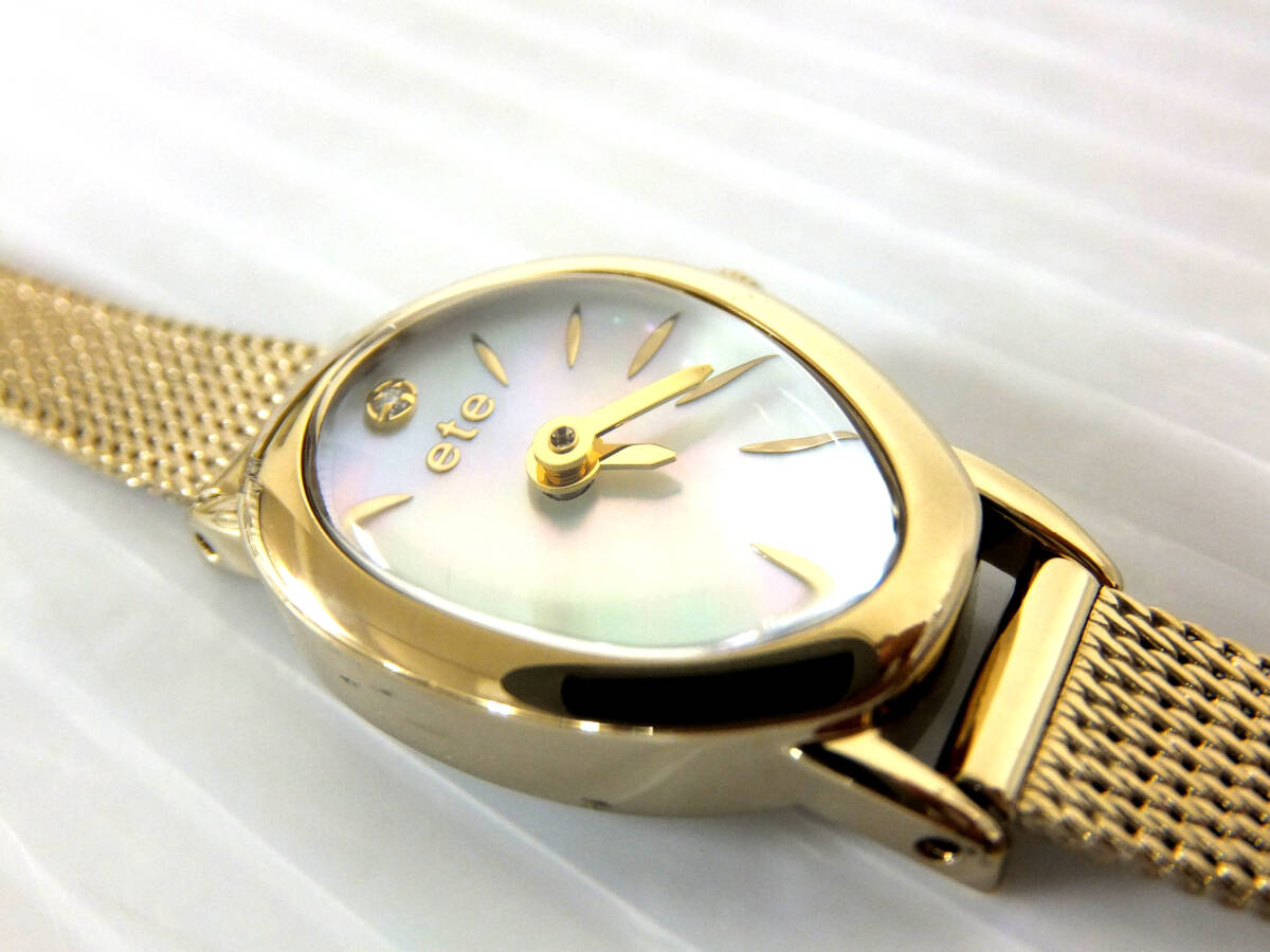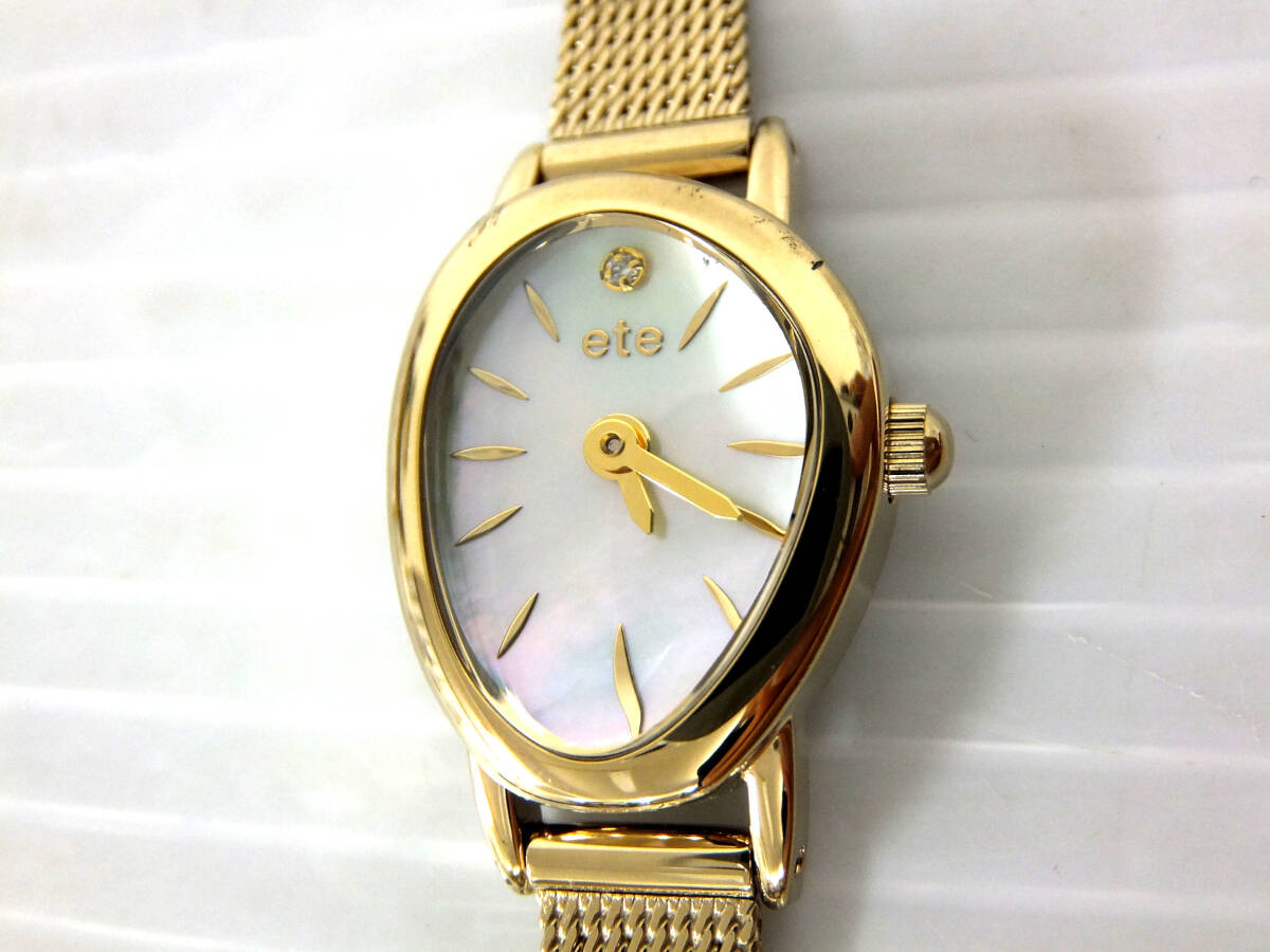 ete エテ 腕時計 シェル文字盤 クオーツ レディース 腕時計 ご覧頂きまして誠にありがとう御座います。 商品は中古品です。多少の傷や汚れ等は見られます。 目立つ物はなく、一般的な中古感だと感じます。 画像でご判断の上、気にされる方や神経質な方の入札はお控え下さい。 11/27日現在、動作しております。 付属品は画像にあるものが全てです。 箱などは無く、本体です。 専門知識がない為、詳細は不明で御座います。 詳細は画像にてご確認くださいませ。 保証や返品は出来かねます。予め御了承くださいませ。 こちらは[レターパック600]でお届けいたしますので、日時指定や、時間指定は出来ません。 申し訳御座いませんが、直接のお渡し、発送方法の指定は受付出来かねます。 商品は簡易梱包で発送致します。予めご了承くださいませ。 NC/NRで宜しくお願い致します。 ※ご理解いただける方のみご入札下さい。 ※個人保管品の為、神経質な方のご入札はお控え下さいませ。 ※入札の取り消しはできません。サイズ・送料などご確認のうえ、慎重なご入札をお願いいたします。 ※新品、未開封品の万が一の初期不良は、メーカー・製造元にご相談ください。当方での保証などは致しかねます。 万が一規約に反する商品だった場合は、送料を含む商品代金の全額を返金対応させて頂きます。