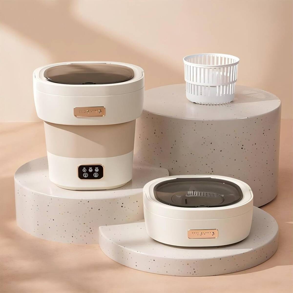 【折りたたみ式で超コンパクト設計】この折りたたみ洗濯機は、使用しない時は高さ約23cmまでコンパクトに折りたたみ可能。小さなアパートや一人暮らしのお部屋にも最適で、収納スペースを取らないミニ洗濯機です。