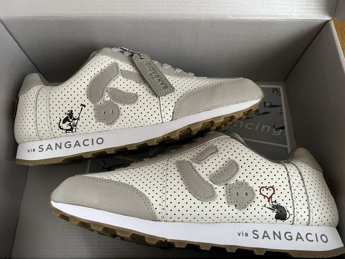 via SANGACIOの“にゅ~ず”と、Banksy(バンクシー)のグラフィティを使用したコラボスニーカーです。
