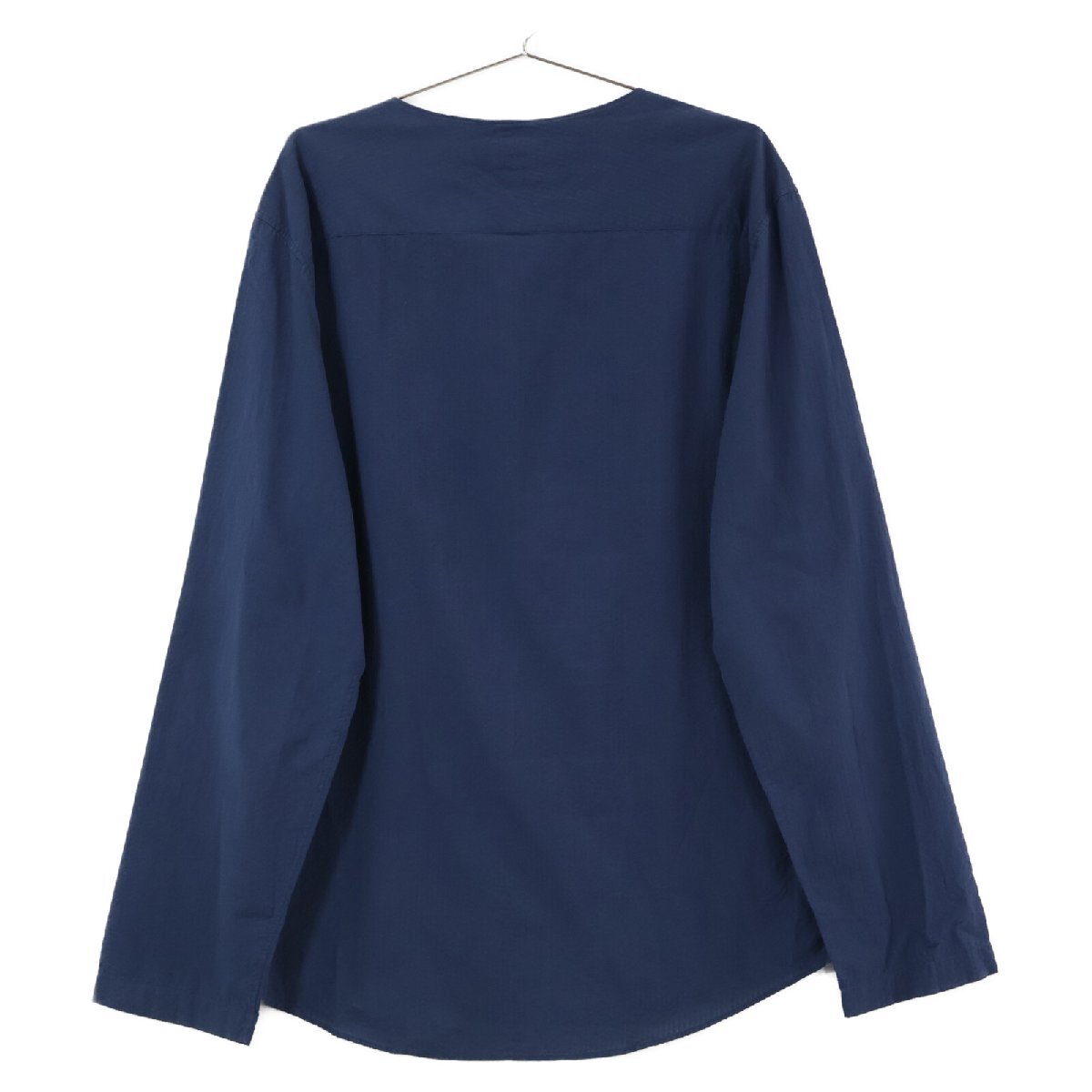国内正規 HERMES エルメス 21SS 11-5610 コットン シェルボタン シアサッカー ノーカラーロングスリーブシャツ 39 ブルー メンズ
