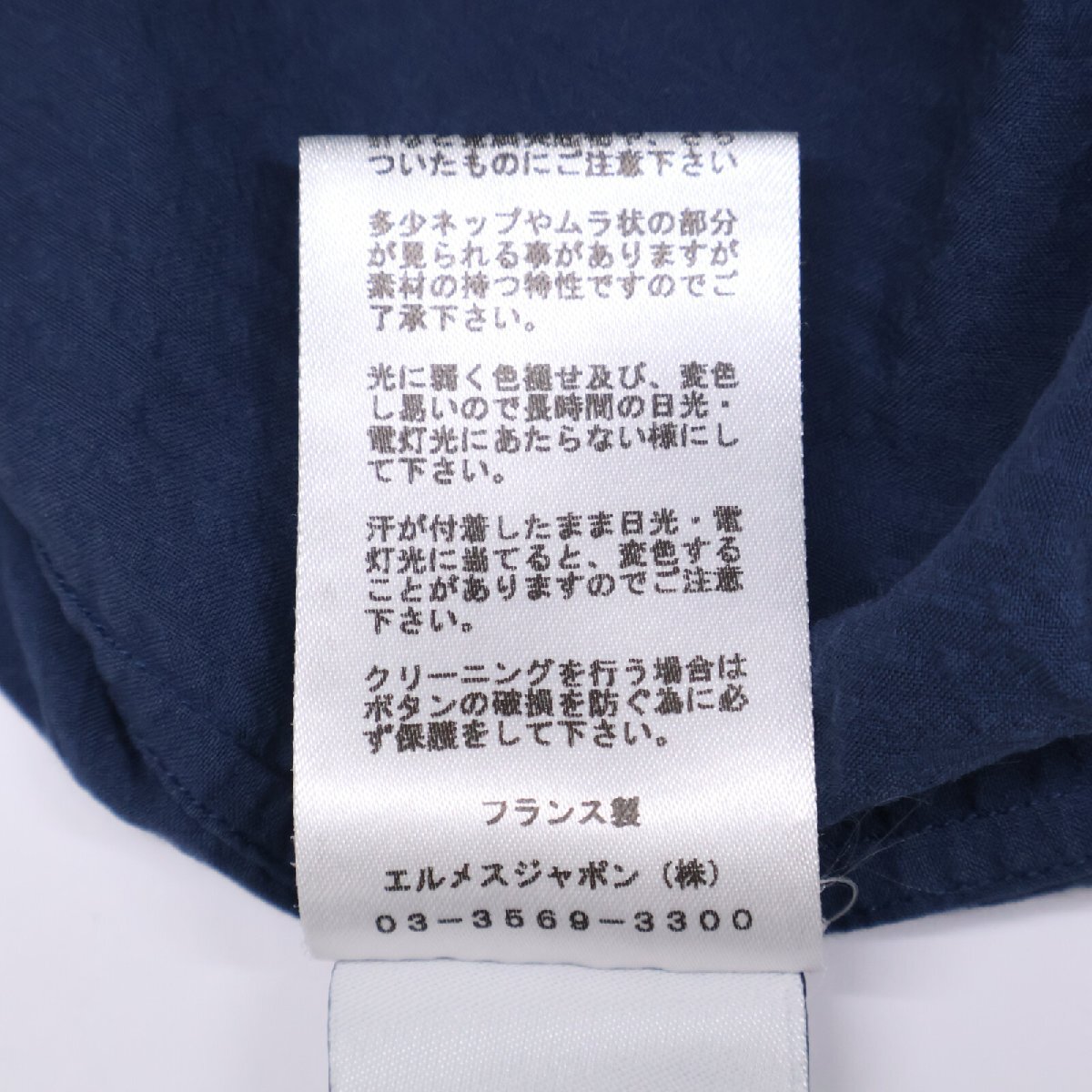 商品名 エルメス 国内正規 21SS 11-5610 コットン シェルボタン シアサッカー ノーカラーロングスリーブシャツトップス