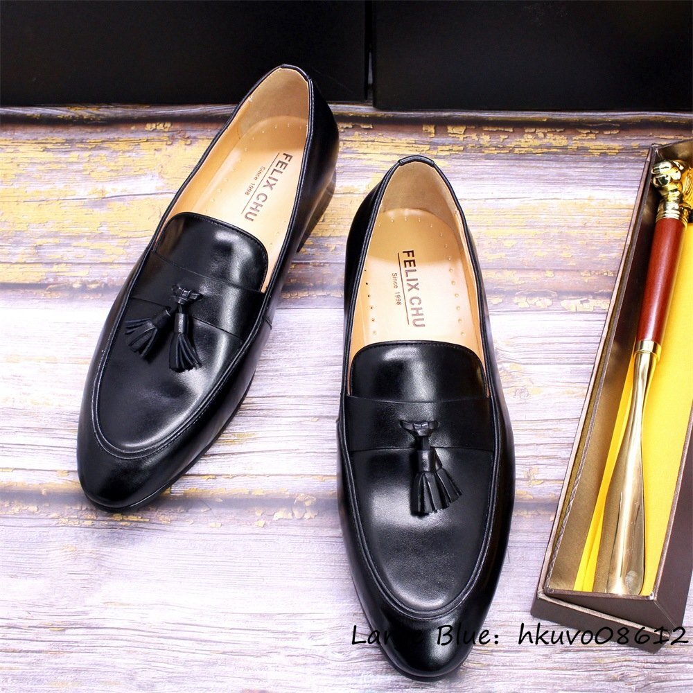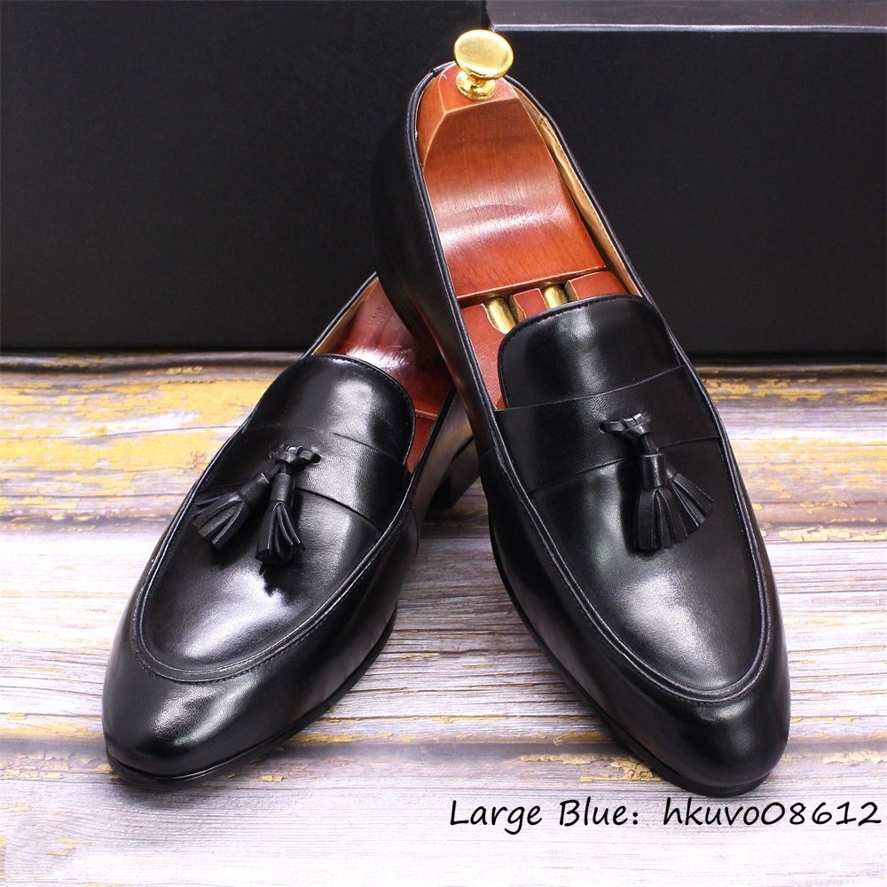 定価9万超■牛革 メンズ ビジネスシューズ 職人手作り タッセルローファー 本革 レザーシューズ 紳士靴 新品 革靴 結婚式 ブラック 27.5cm