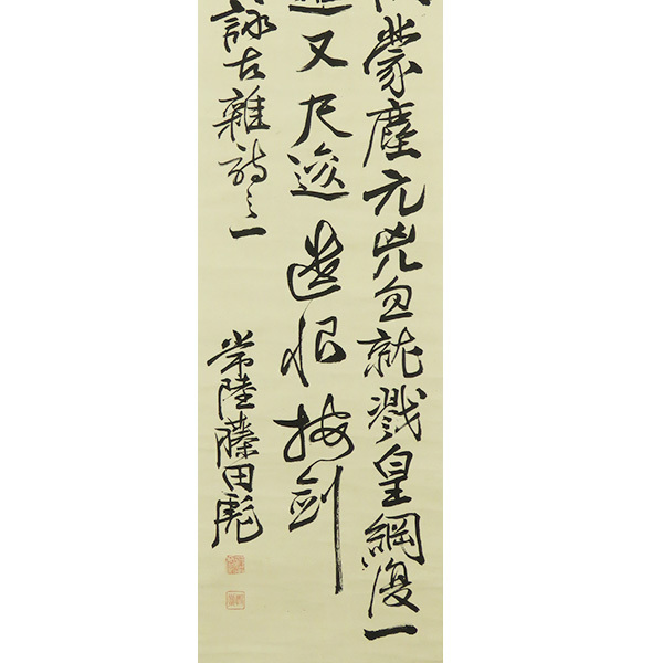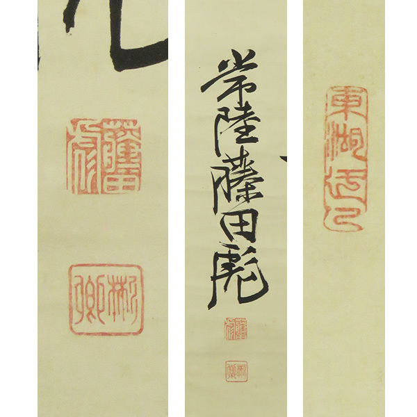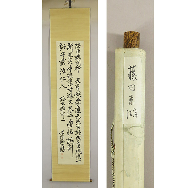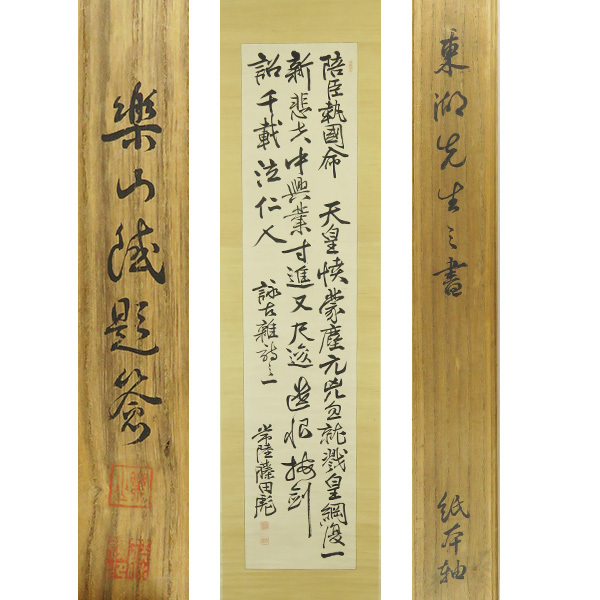 B-4359【真作】藤田東湖 肉筆紙本 三行書 楽山箱書 掛軸/儒学者 勤王家 水戸藩士 藩政改革 弘道館 尊攘思想 書画