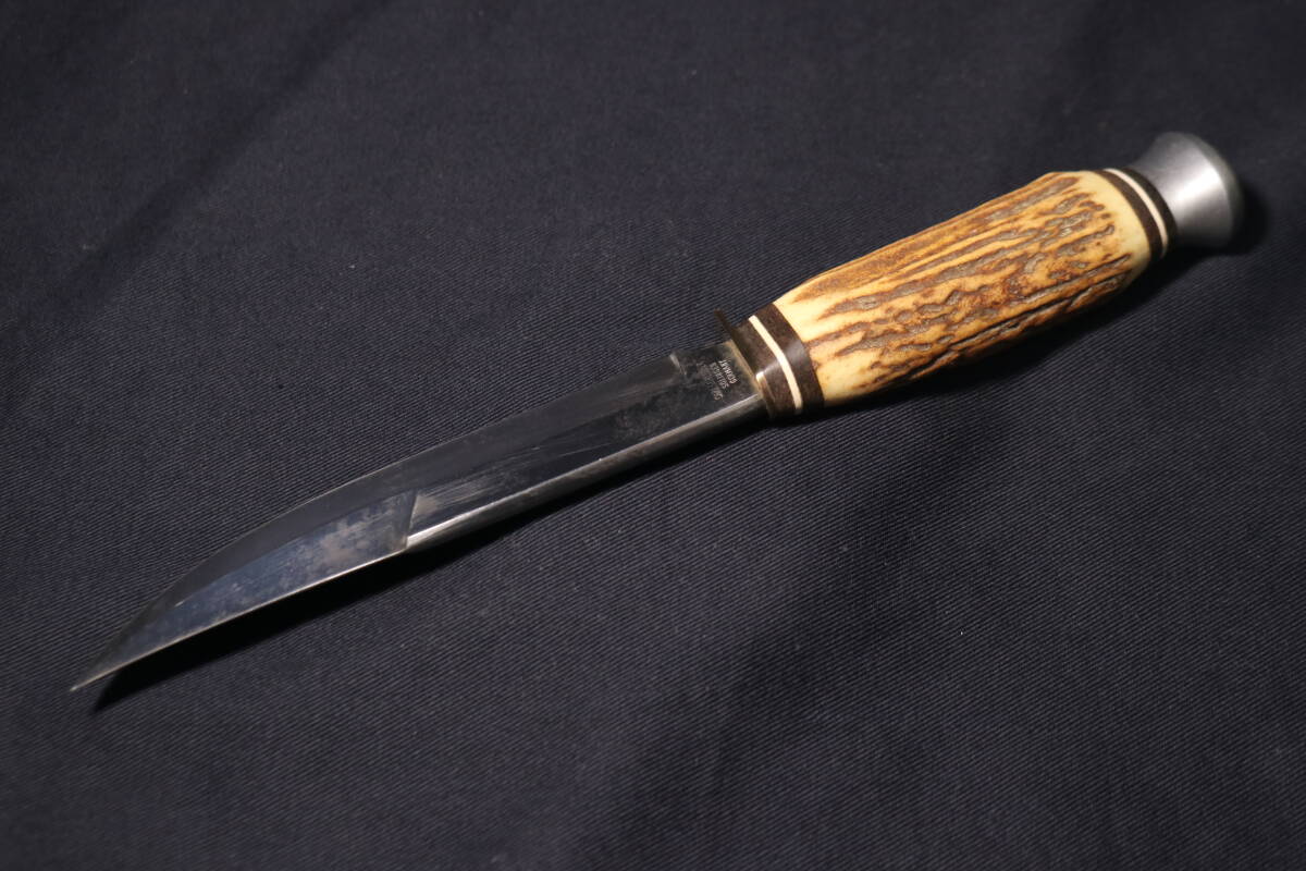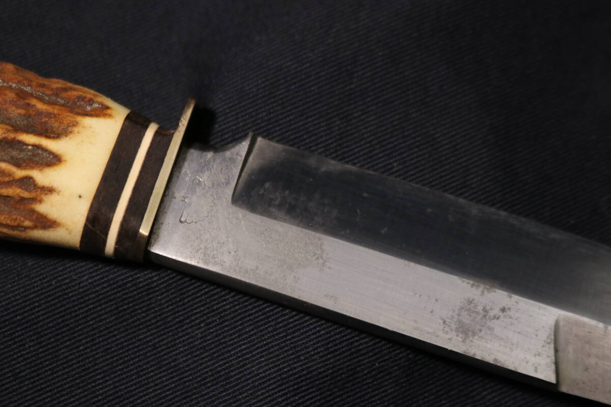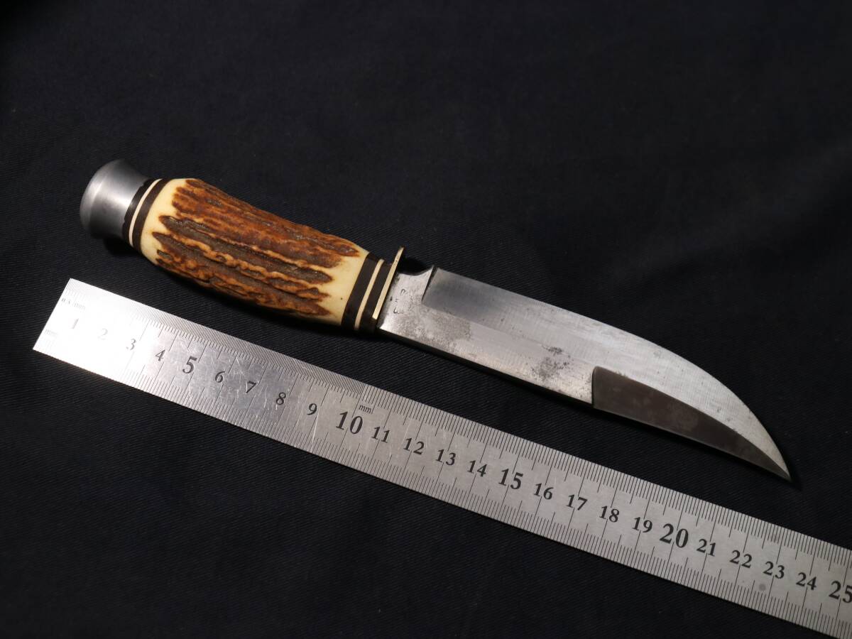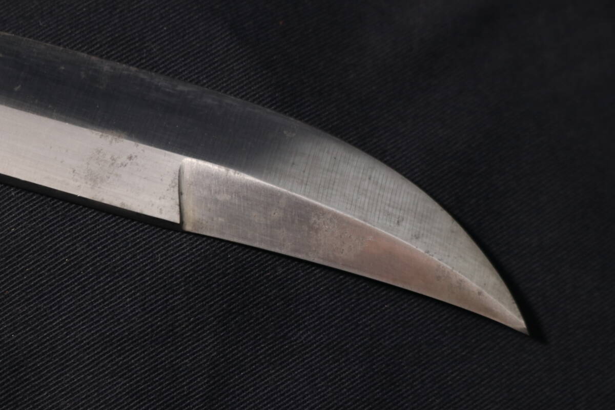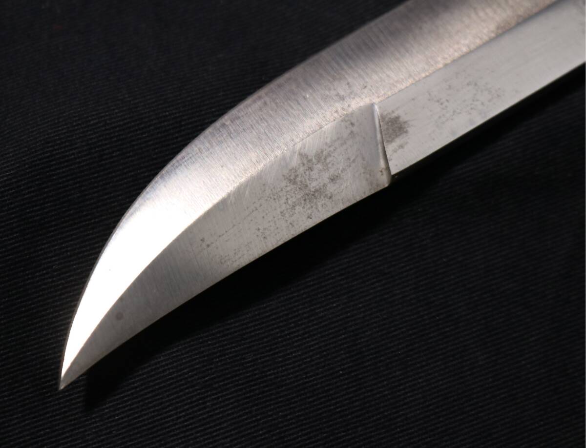 鋼にスレコキズ、柄付近に錆、黒ずみ汚れあり、古い物ですので、状態が気になる方はお控え頂ければと思います。