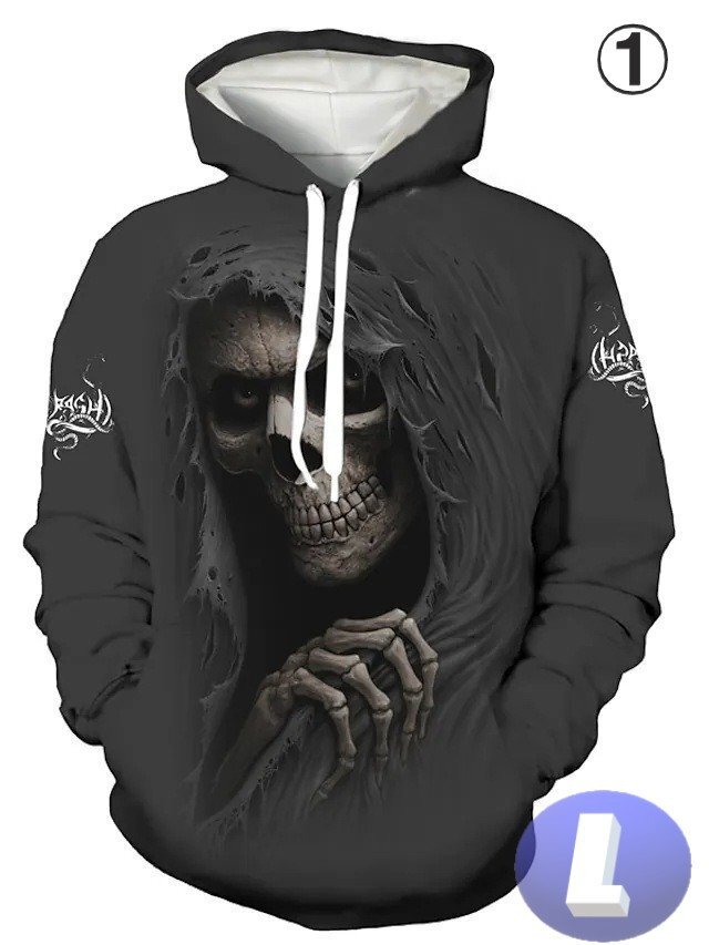 フード付き ドクロパーカー カラー1 L トレーナー アウター 防寒 n718