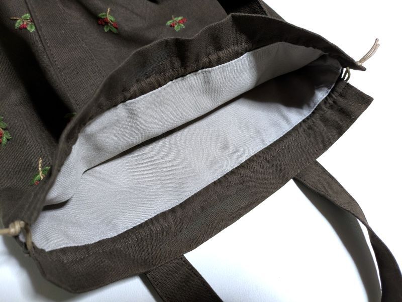 裏地は少し厚手のキャンバス生地(ライトグレー色)を使用しています。