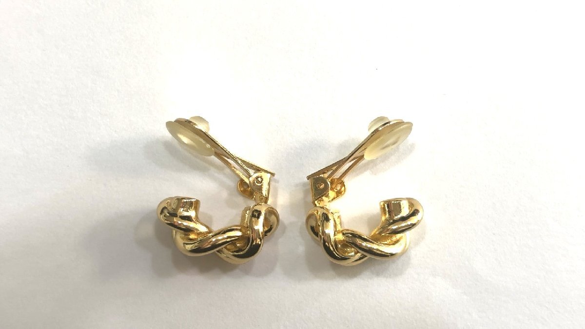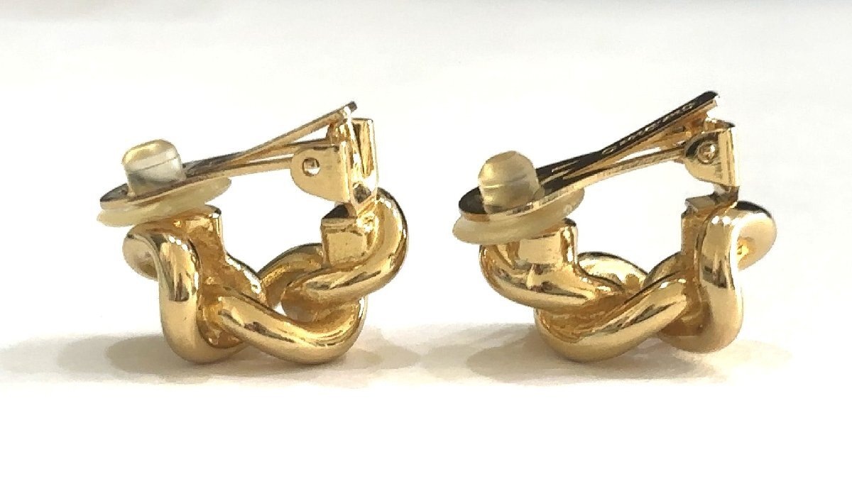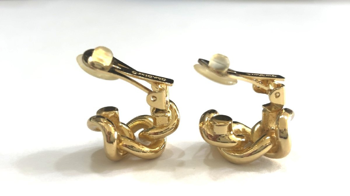 美品 クリスチャン・ディオール Christian Dior ゴールドカラー イヤリング 3連 チェーンモチーフ