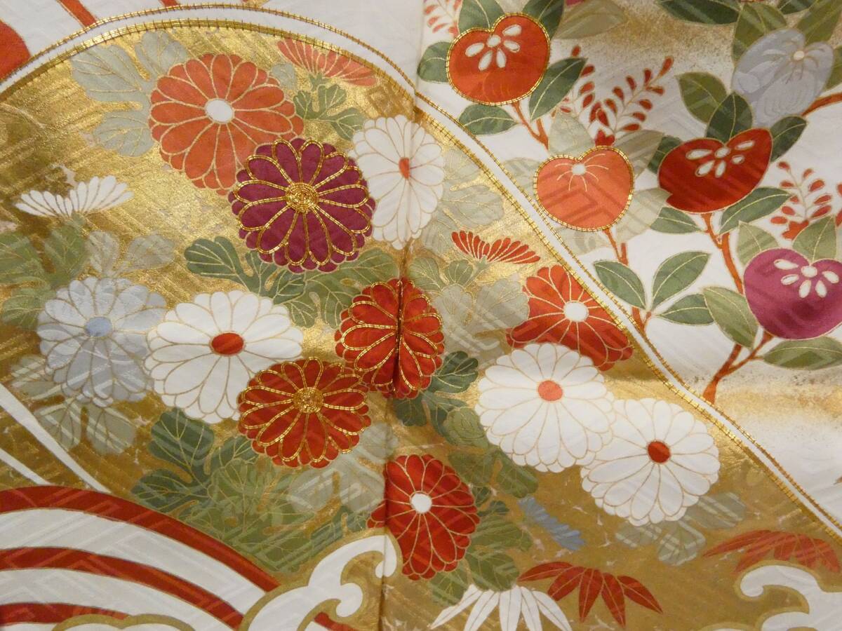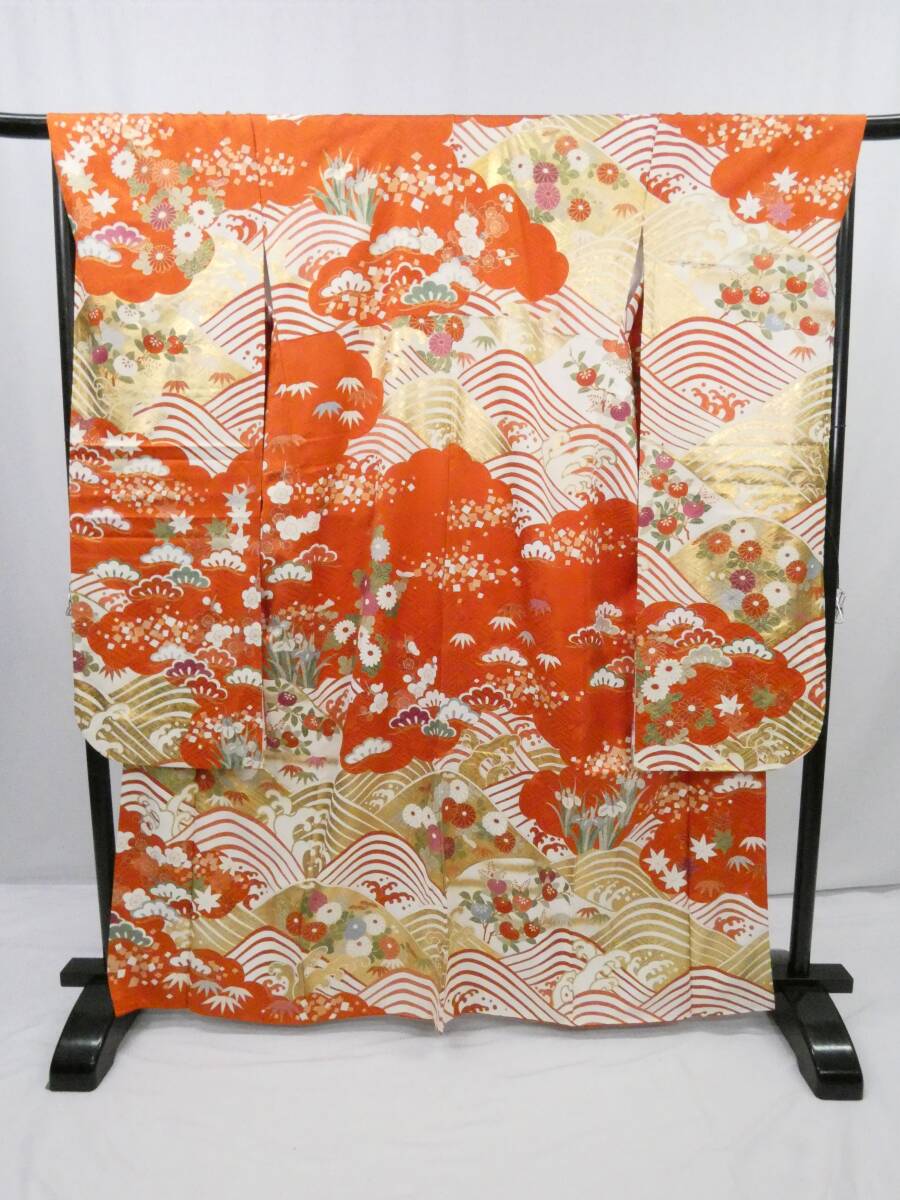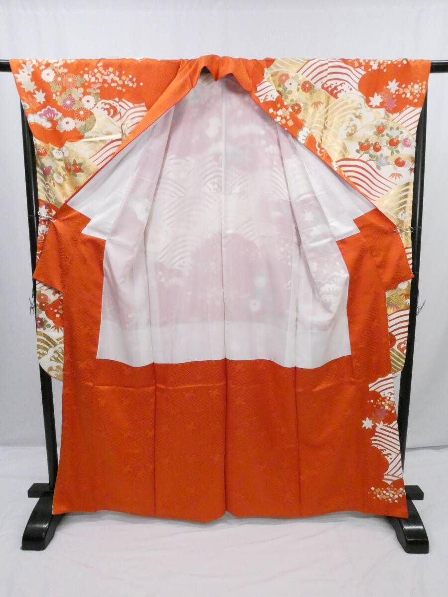 ◇KWF061 振袖 金駒刺 正絹 朱色 古着 結婚式 卒業式 成人式 初詣