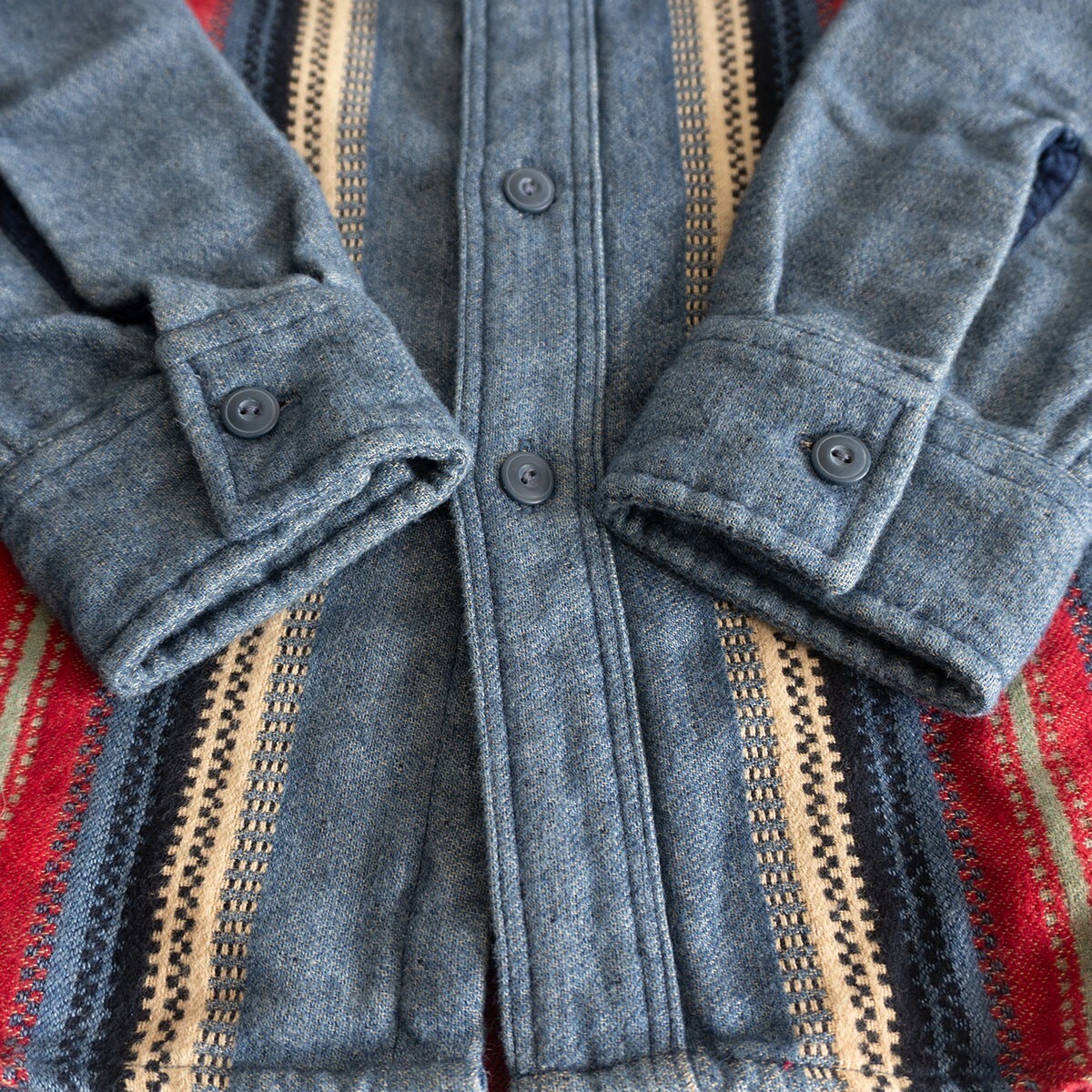 インディゴジャーガード素材を使用したネイティブシャツです。雰囲気抜群の一着です。
