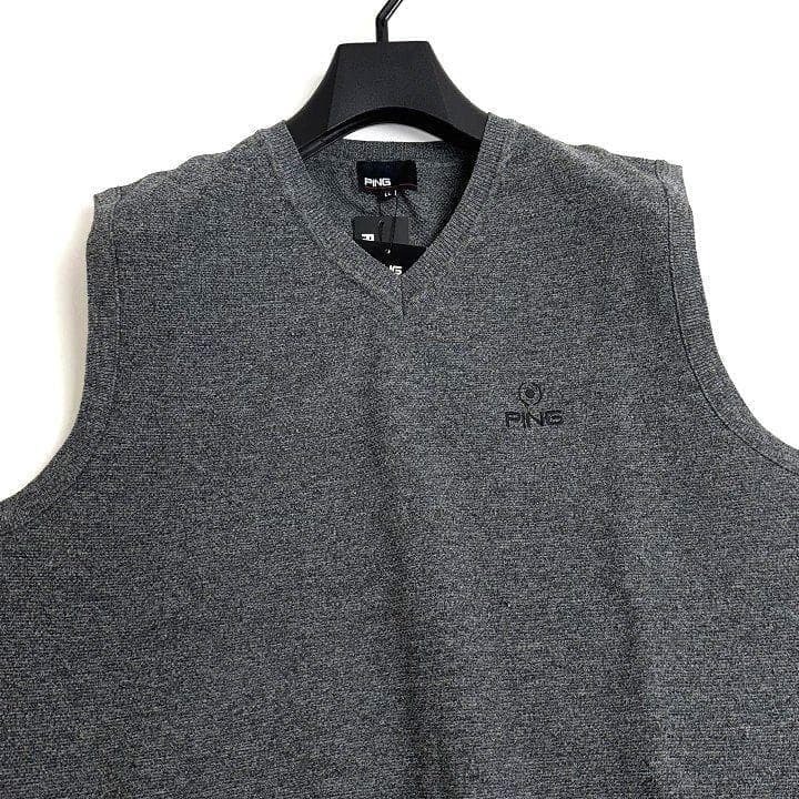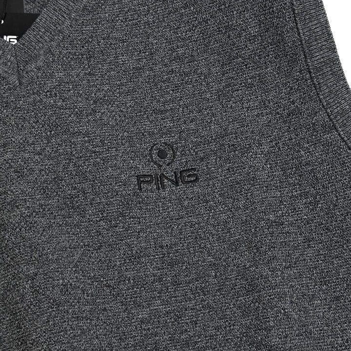 胸元のワンポイントのロゴがアクセントのシンプルで使いやすいニットベストです。