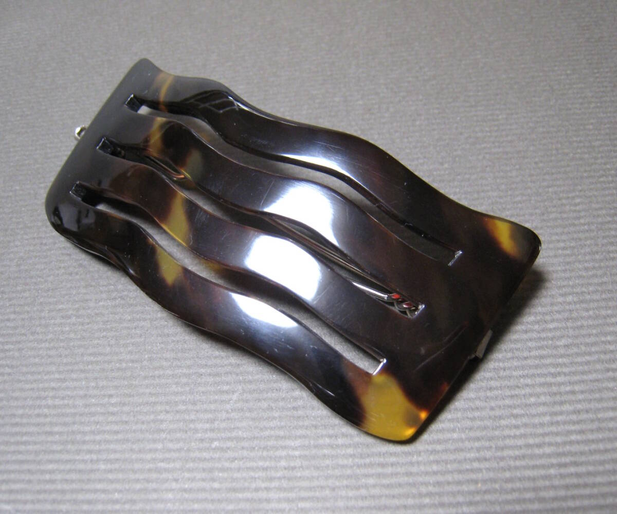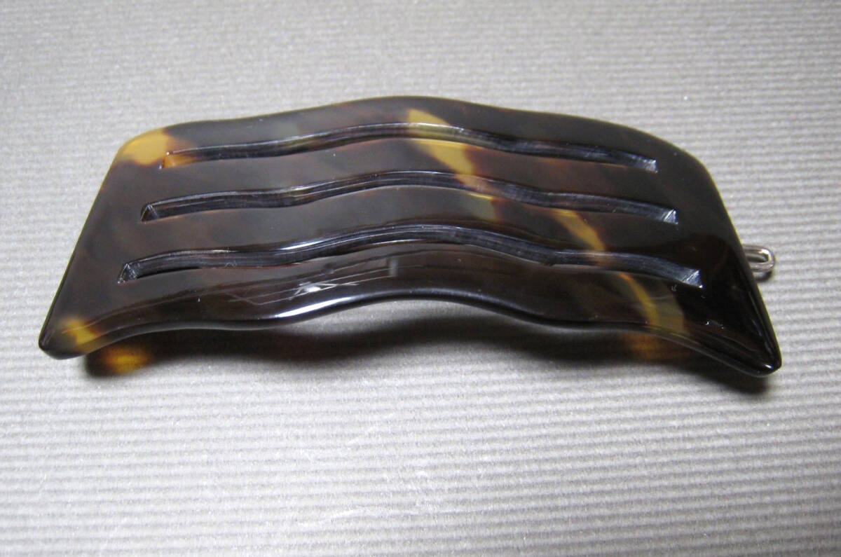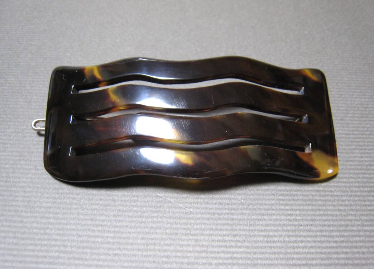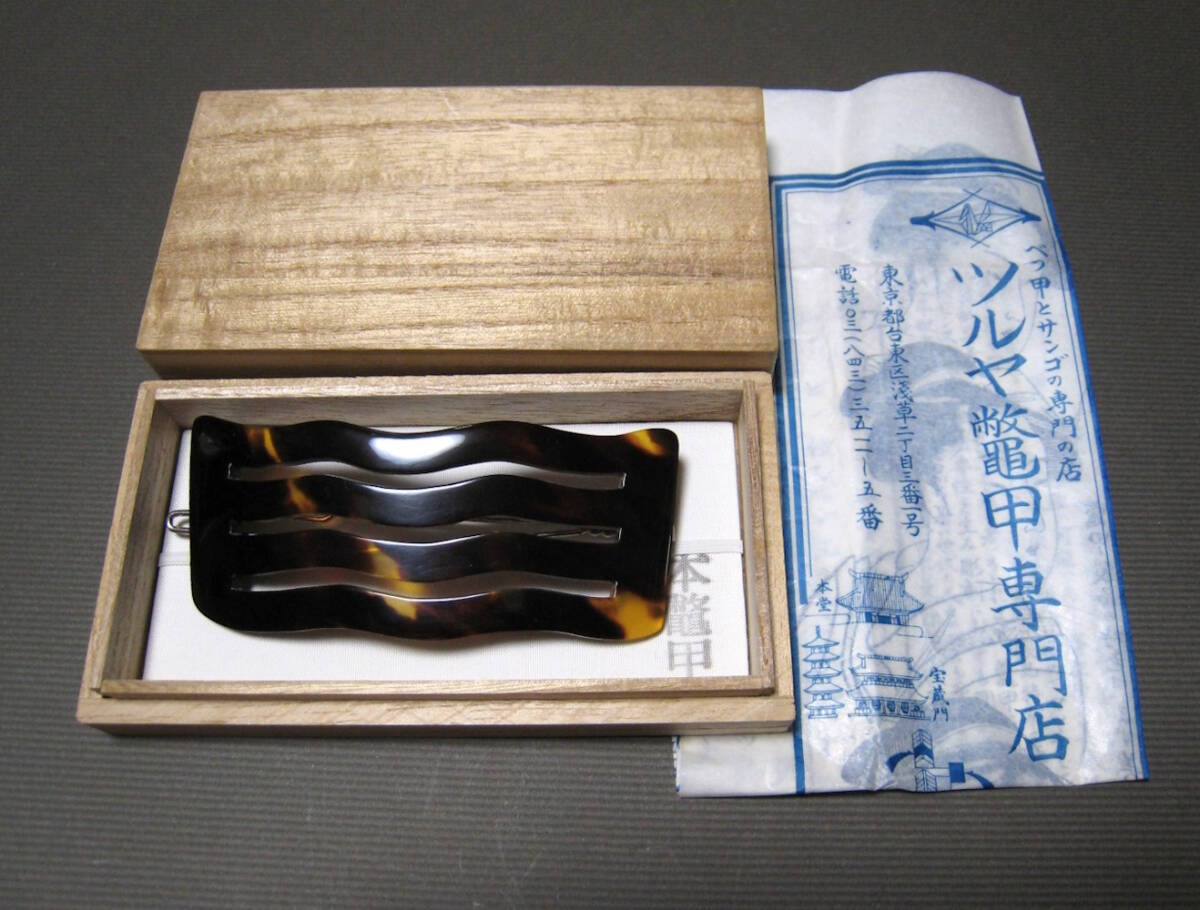 本鼈甲 バレッタ 東京 浅草 老舗 ツルヤ鼈甲専門店 伝統工芸 波型彫り 髪飾り 鼈甲製 箱入り 委託品