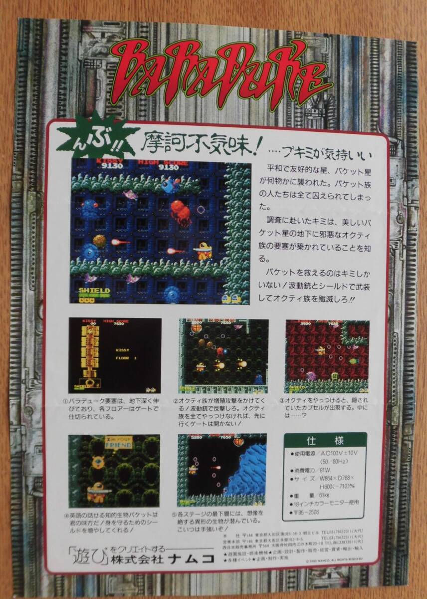 1985年 ナムコ 【 バラデューク(BARADUKE)】A4のカタログ1枚・・魔訶不気味な世界・・三つ折り跡があります