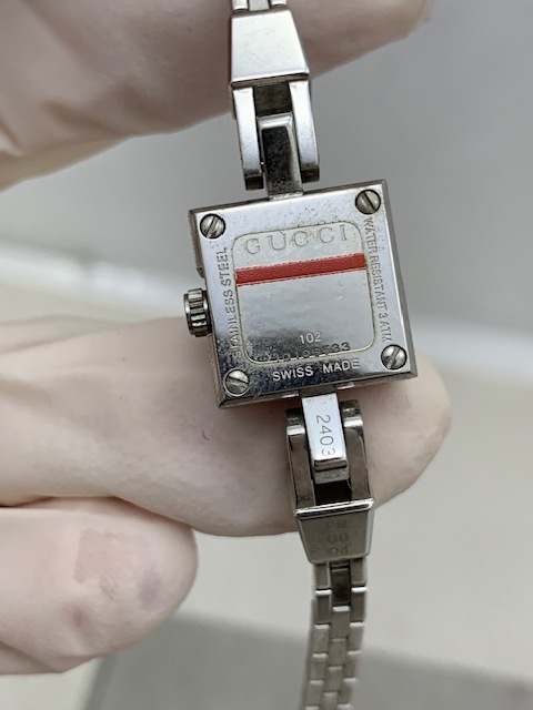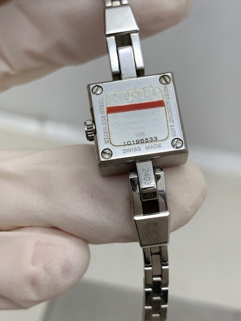 ☆1000円セール☆GUCCI グッチ 腕時計 102 2403 Gロゴフェイス ホワイト文字盤 シルバー系◆34195