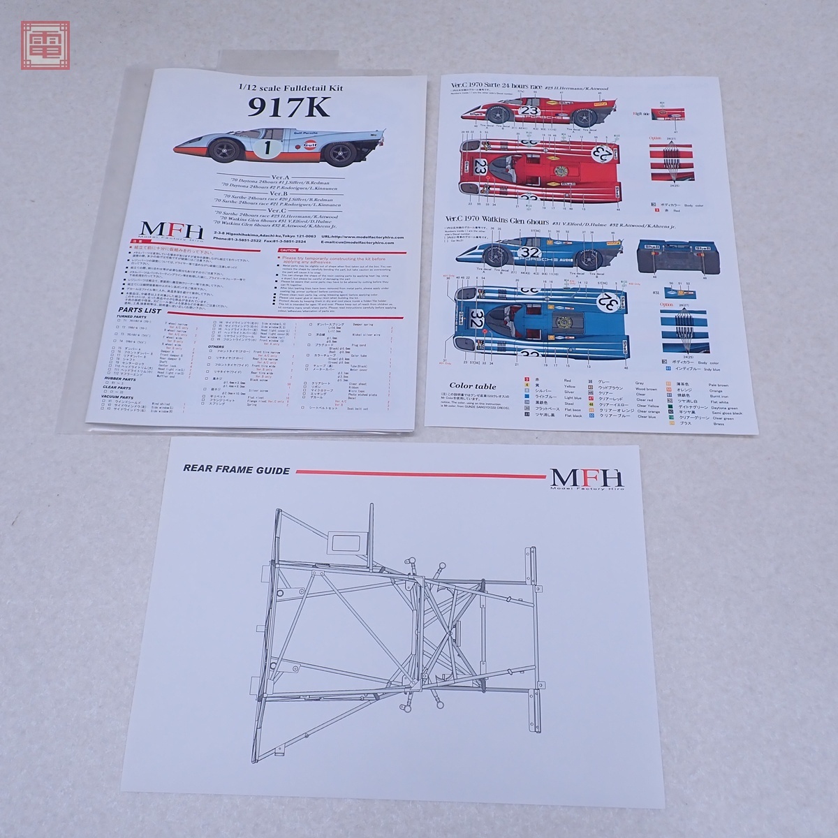 未組立 モデルファクトリー 1/12 ポルシェ 917K Parts Set B フルディテールキット MFH ■外箱にスレ、角スレ、キズ、汚れ、ヤケ、黄ばみ、凹み、破れ、書込みシールの貼付があります。 ■内袋は未開封です。 ■内袋にスレ、汚れ、破れ、黄ばみ、テープの貼付があります。 ※一部、箱の中にテープ留めされています。 ■パーツにスレ、ヤケ、黄ばみ、金属部分にサビがあります。 ■説明書にスレ、シワがあります。 ■付属物については簡易検品は行っておりますが詳細なチェックは行っておりませんので、万が一、欠品や余分なものが入っていたとしてもご了承ください。 ■写真のものが全てです。付属物の有無や状態については写真からご判断ください。 ■付属物については細かいチェックはしておりませんので、万が一、欠品があったり余計な物が入っていたとしてもご了承ください。 ■商品到着後、当店の保証期間中は、商品及び箱や取説、付属品などを1つでも廃棄や破損をしないようにお願い致します。廃棄や破損をした場合、商品に問題があった場合でも対応や返金などの対処ができなくなります。 ■商品によりますが、発売されてから10年以上経過している中古品である事をご理解頂いた上でご入札をお願い致します。なお、新品や美品、また特記事項がある場合は別途明記します。 | |||