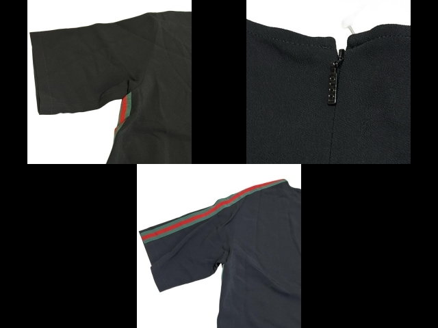 グッチ GUCCI サイズ46 L 528977 - 黒×レッド×グリーン レディース 七分袖/ロング ワンピース