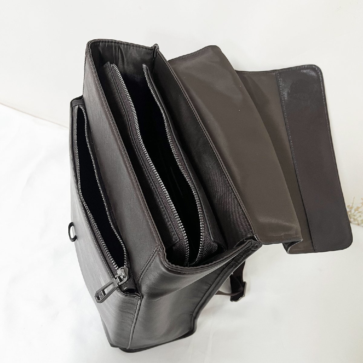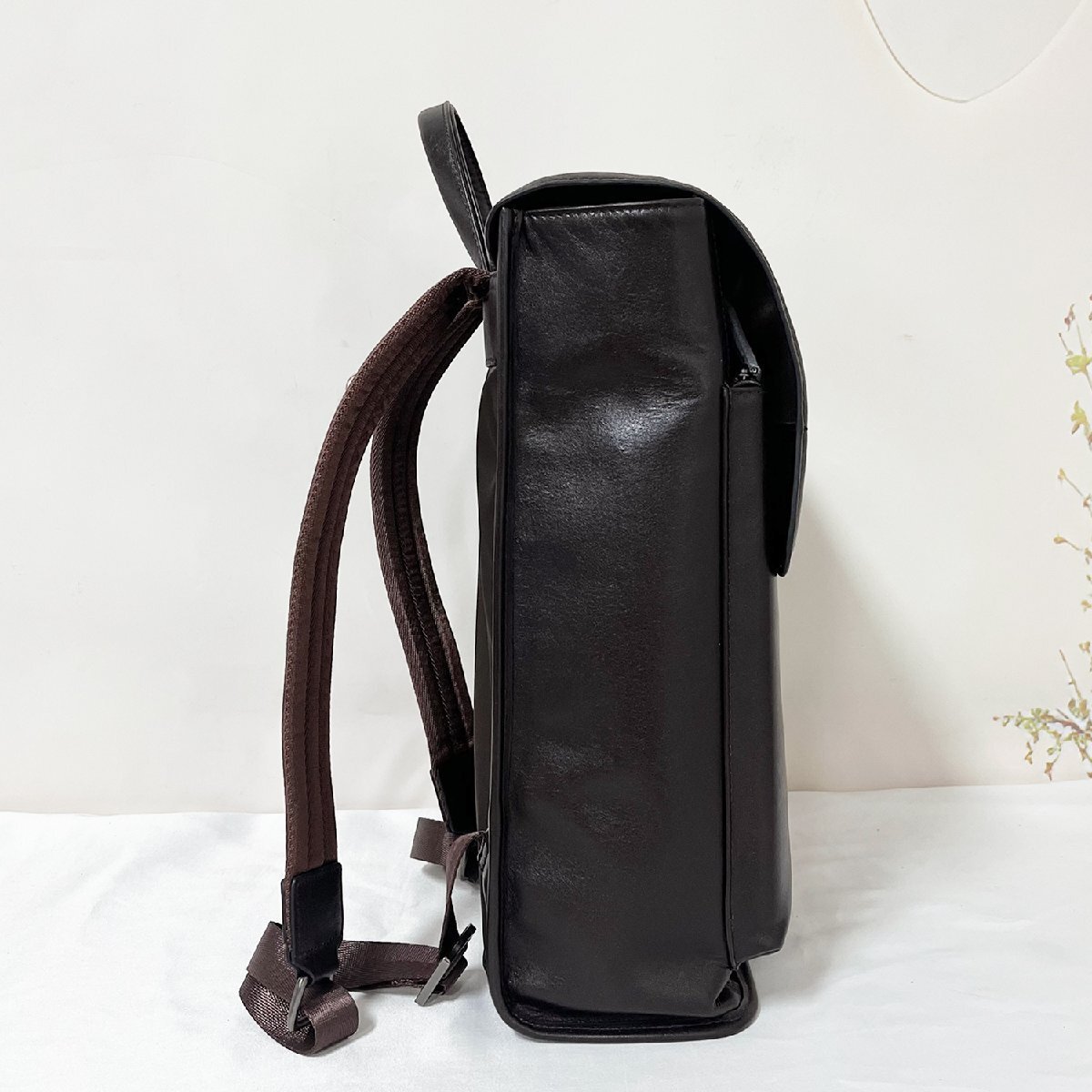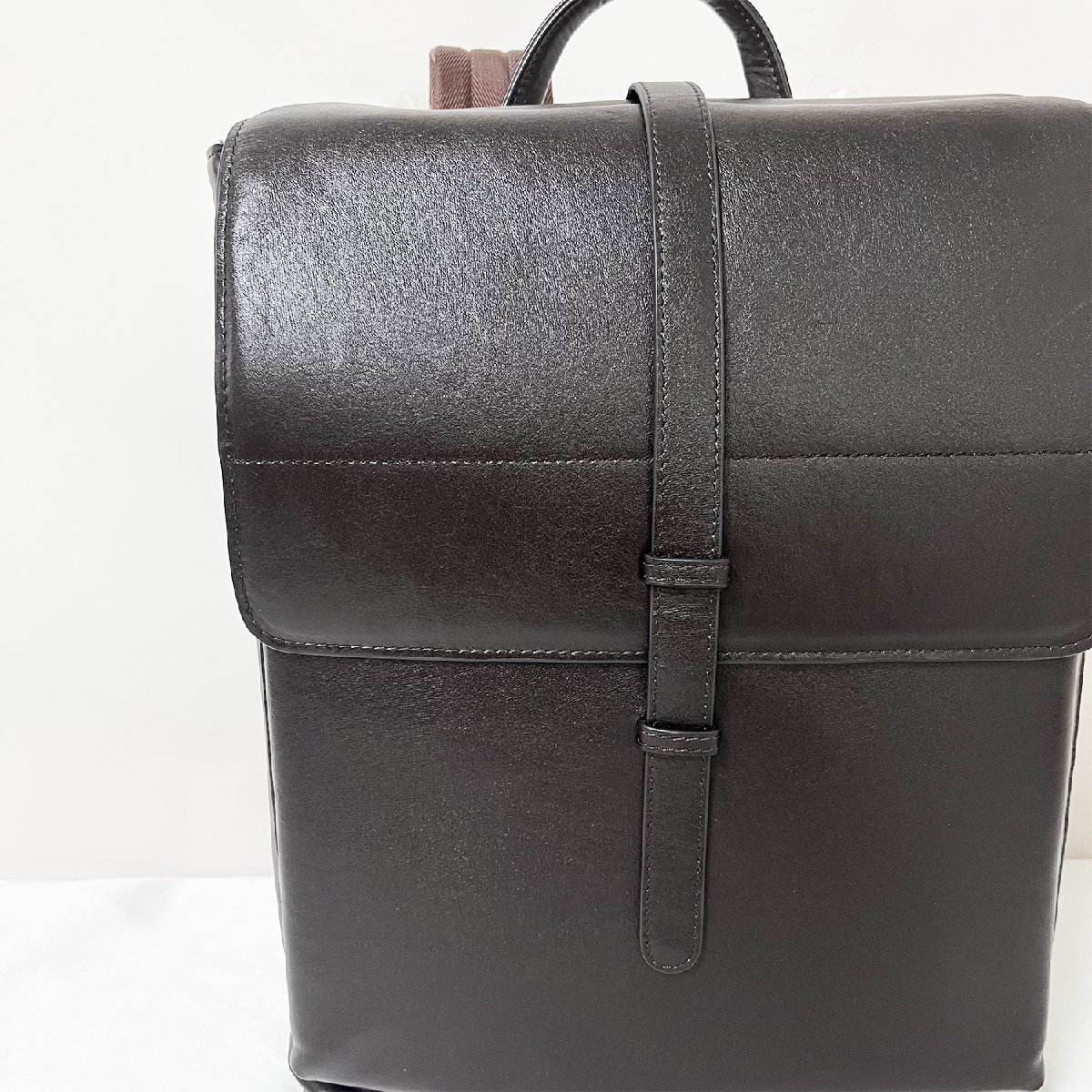 薄いながらも革製でレトロな雰囲気のあるバッグパック。