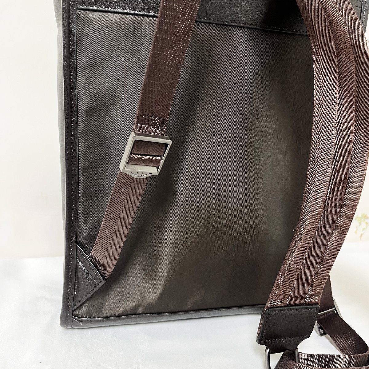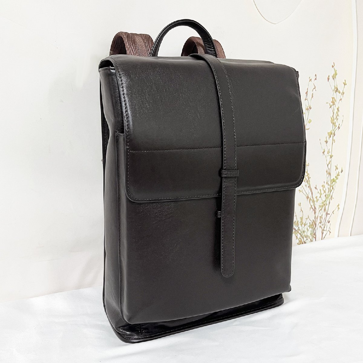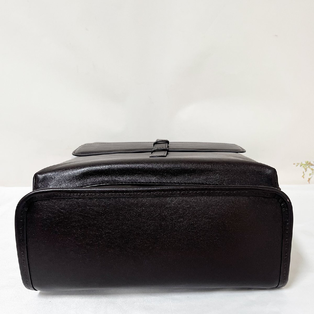 薄いながらも革製でレトロな雰囲気のあるバッグパック。