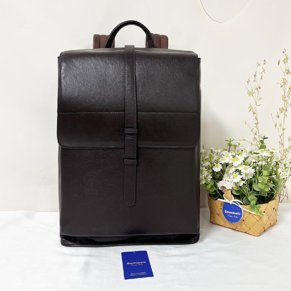 逸品・バックパック 定価13万◆Emmauela・イタリア・ミラノ発◆牛革 本革 撥水 光沢 大容量 軽量 リュックサック ビジネス 旅行 出張