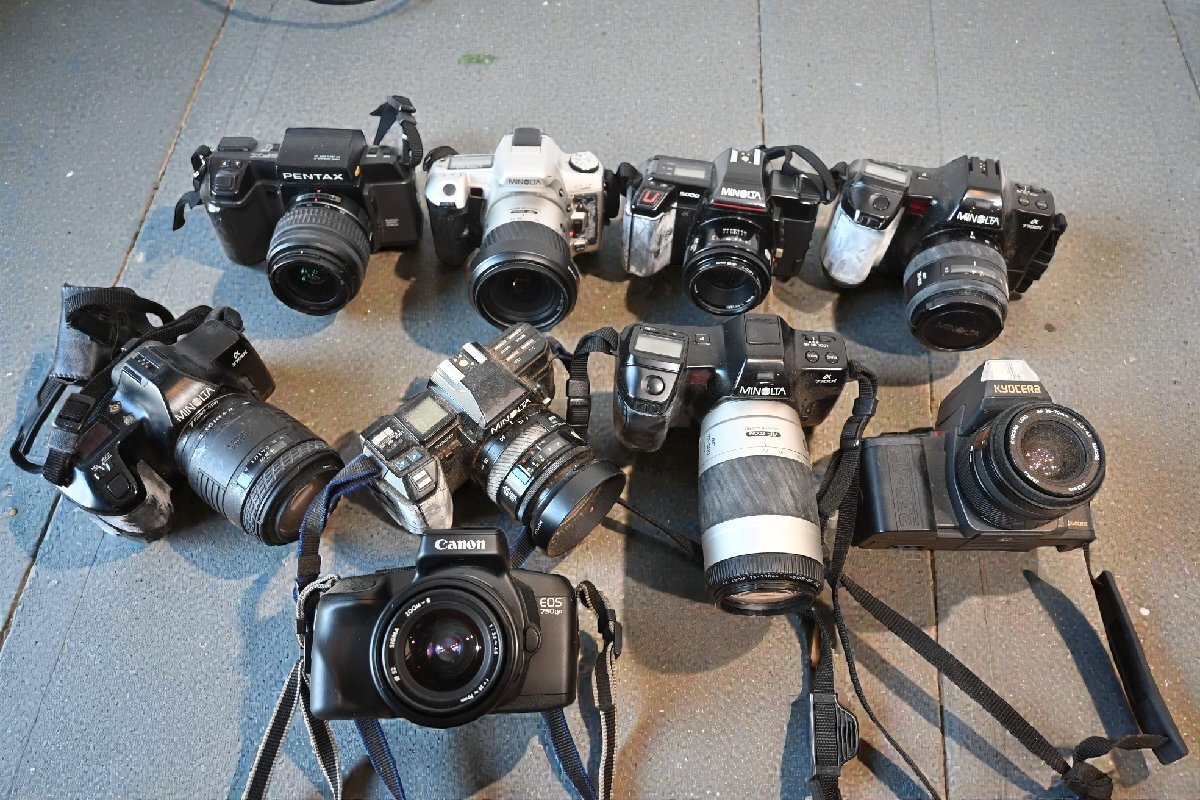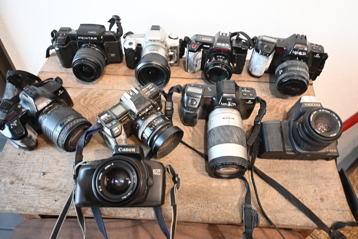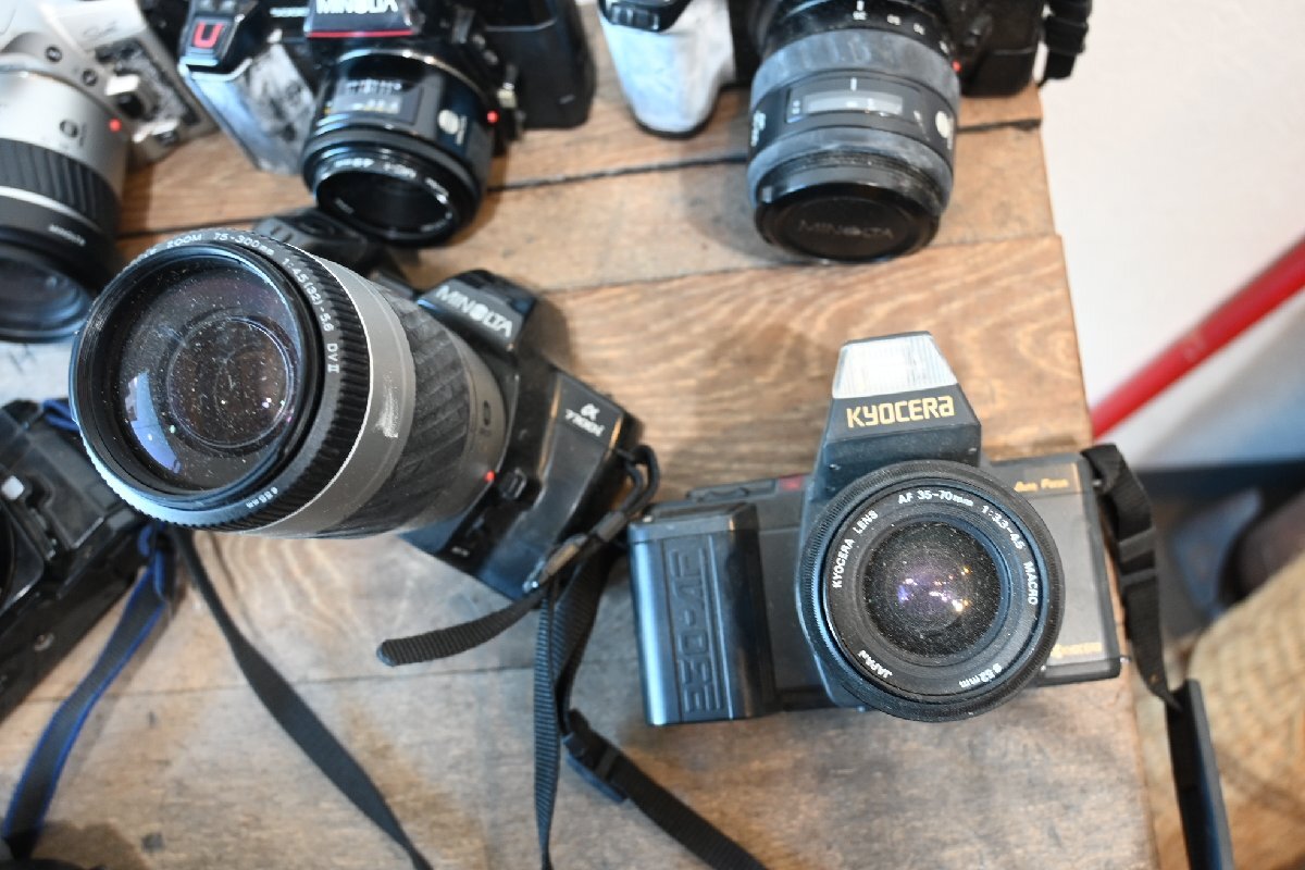 ○フィルムカメラまとめ売り】9台 MINOLTA・PENTAX・Canon・Kyocera ほか 大量セット ジャンク扱い古道具のgplus広島2512k