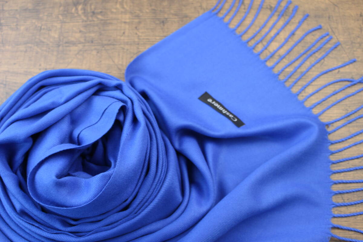 新品【カシミア Cashmere】無地 ブルー BLUE 青 Plain ライトタッチ 大判 ストール/マフラー