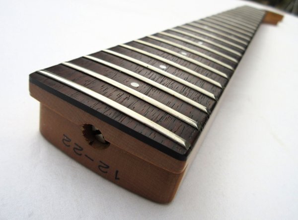 レギュラースケール(648ミリ)、わずかにつばだし22フレット。