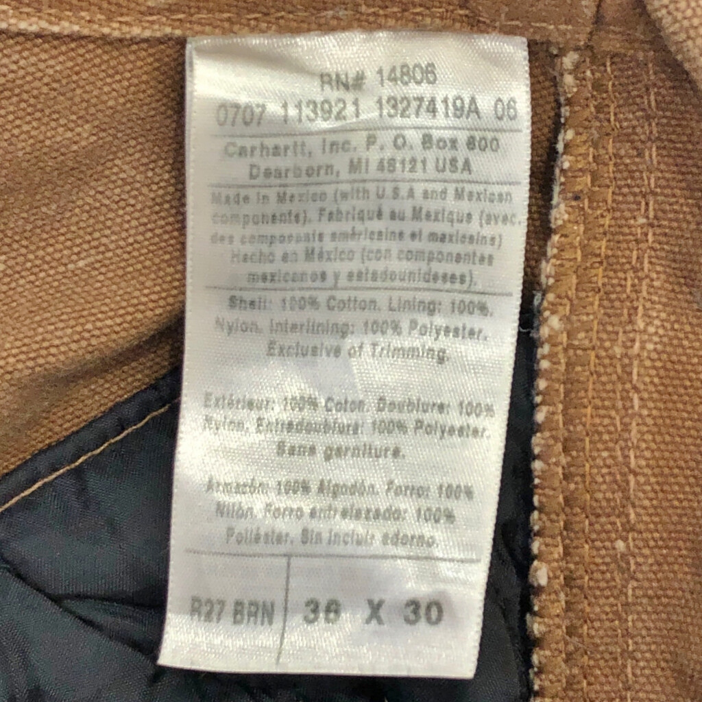 | 【商品管理番号】 V8122 【ブランド】 Carhartt/カーハート 【サイズ】 W36 L30 【実寸サイズ】 総丈:約141cm ウエスト:約82cm 股上:約33cm 股下:約72cm わたり幅:約37cm 裾幅:約26cm 【主な素材】 表地 : コットン 裏地 : 13848 【色】 ブラウン 【仕様】 00年代 裏地キルティング ダック ダブルニー ビブオーバーオール 【状態】 汚れ:もも 特記事項:変色、糸ほつれ | |||