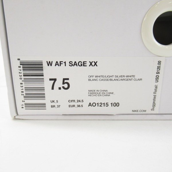 | NIKE/ナイキ WMNS AIR FORCE1/エアフォース1 SAGE XX スニーカー AO1215-100/24.5 /080 | |||||||||||||||||||||||||