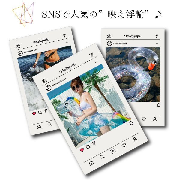 | ☆クリアフロート フラミンゴ ユニコーン ※オーダーフォームにご希望のタイプを知らせください。 ■ユニコーン ■サイズ 【商品名】 クリアフロート フラミンゴ ユニコーン 【素材】 PVC素材 【タイプ】 ◆ユニコーン ★サイズ★ ■幅 :約80cm ■高さ:約65cm ■内側直径:約28cm ◆フラミンゴ ★サイズ★ ■幅 :約80cm ■高さ:約60cm ■内側直径:約28cm 【特徴】 ◆SNSで特に映えるキラキラのラメ入りクリア浮き輪! ◆ナイトプールで特に映える浮き輪で80サイズで大人もガンガン使える大き目の浮き輪です!” ◆プールや海で目立つこと間違いなし! ◆小学生くらいから大人まで幅広くお使いいただけます。 *お子様がご使用される場合は一度室内でサイズの確認をし、抜け落ちる心配がないことを確認したうえでご使用ください。 | ||||