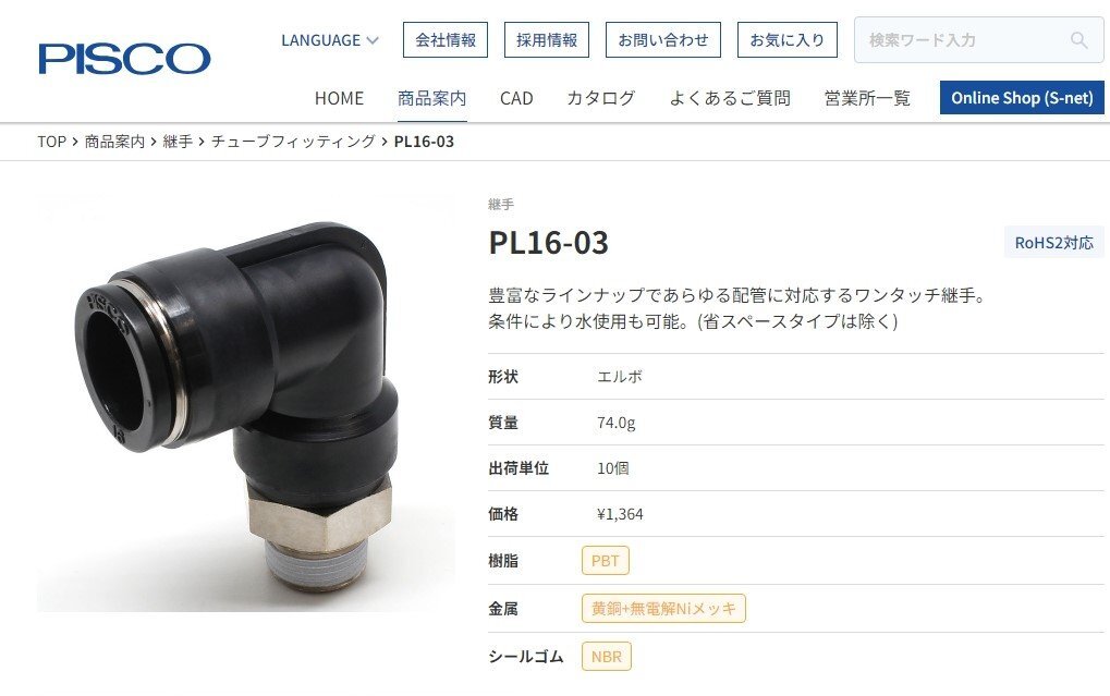 ●PISCO ワンタッチ継手 PL16-03 エルボ 24個セット、中古品です。